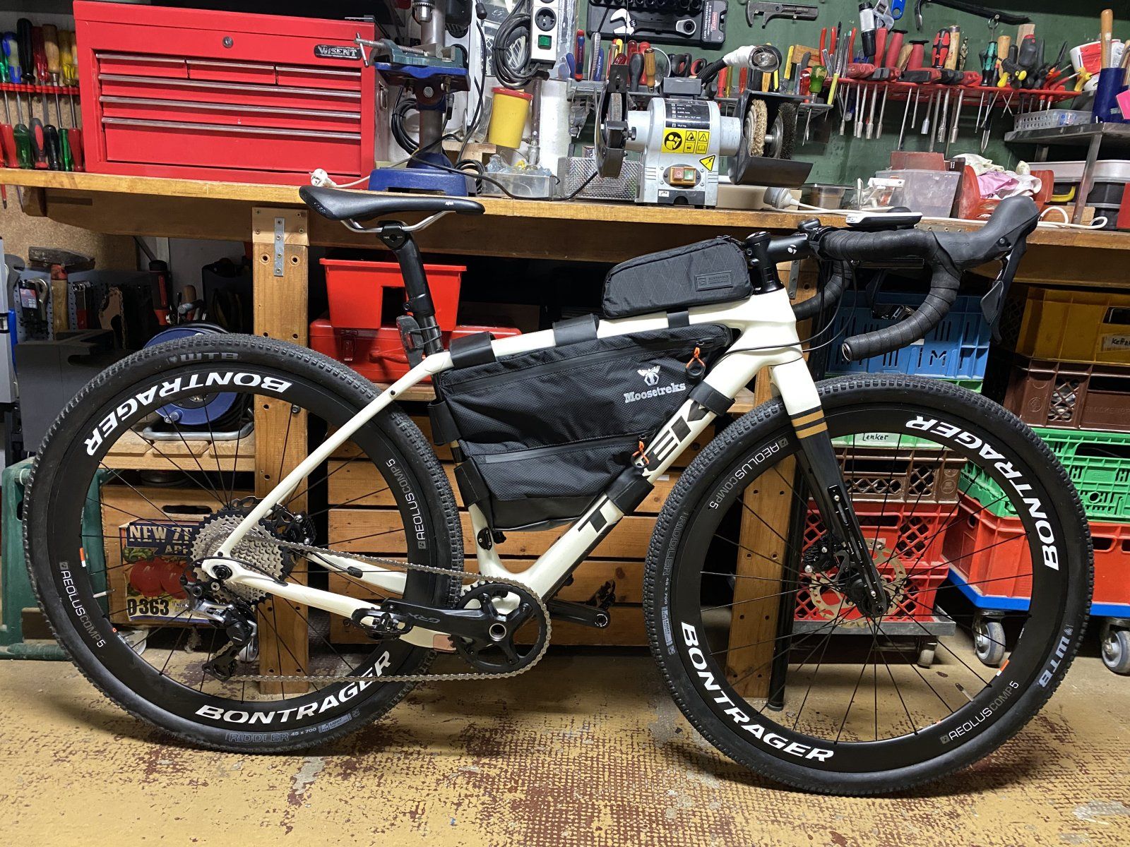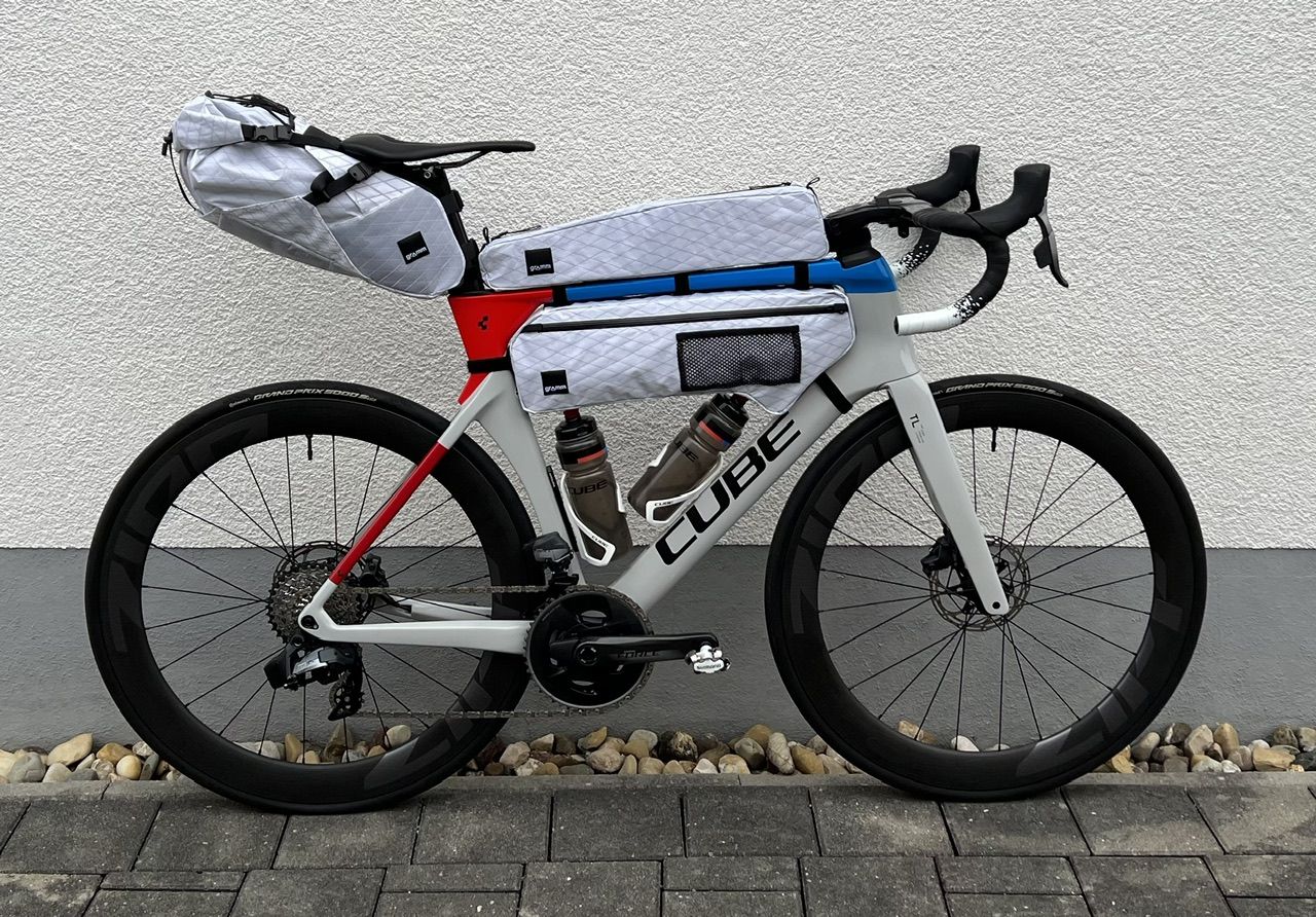 Tasche vs. Flaschenhalter plagt mich tatsächlich, das Rad ist gleichzeitig Tourenrenner, Gravelbike und Daily Driver. Die Idee ist, bei Teilen nicht viel hin und her zu tauschen, im vollen Wissen dass das immer ein Kompromiss ist. Es ist auch ein Projekt, mit dem ich lernen möchte, was so geht: Selbstreduktion, wie wichtig ist mir Geschwindigkeit, und ist Bikepacking überhaupt das, was ich will. Angefangen hat es mit der Idee, mit dem Rad in die Berge zu fahren oder vom Bahnhof Talsohlen zu durchqueren, dann dort Splitboarden zu gehen (Skitouren mit einem zweiteiligen Snowboard) und schließlich mit dem Zug zurück zu fahren. Ob ich das je mache bleibt offen... Anfangen soll es mit Overnightern oder Kilometerfresserei um Freunde zu besuchen und bei denen zu pennen, dann mit denen ne Runde, dann zurück heim.