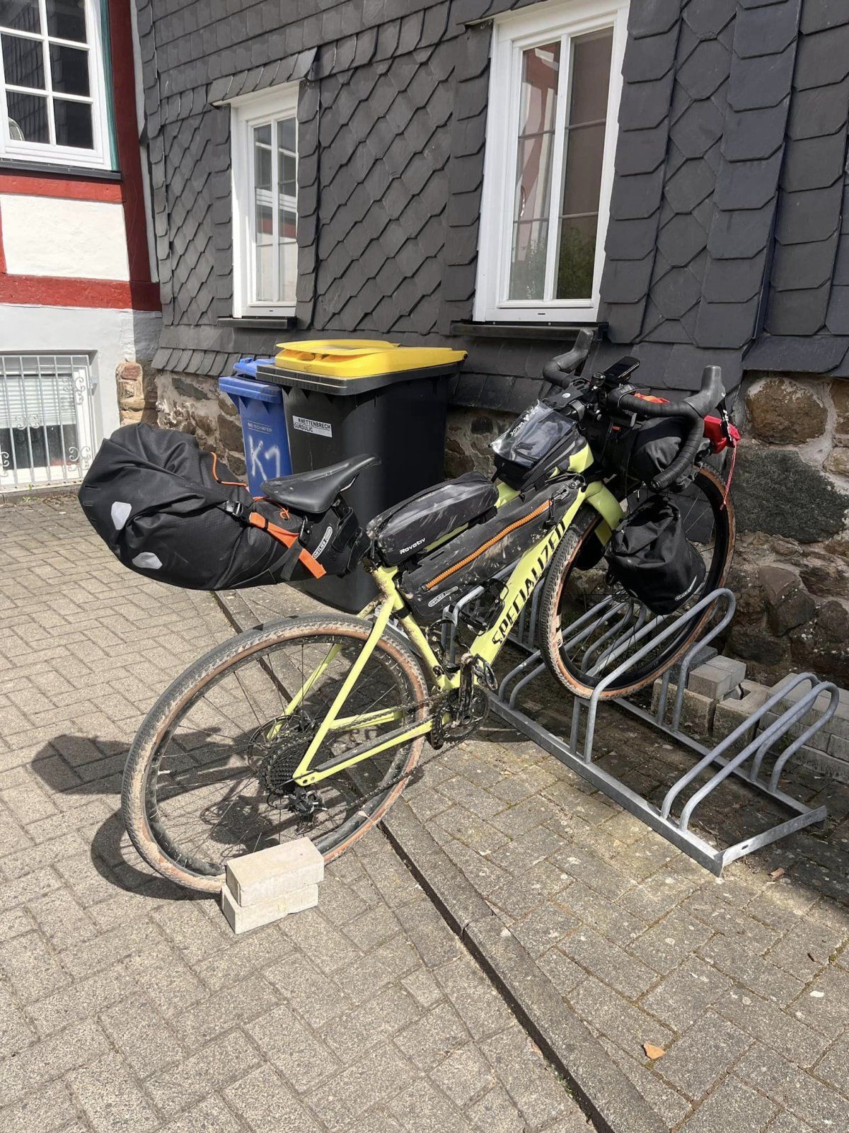 Z.B. deine Oberrohr-Tasche, die sehr breit ist. Auch die zweite Oberrohr-Tasche vor der Sattelstütze ist nicht die schlankste.