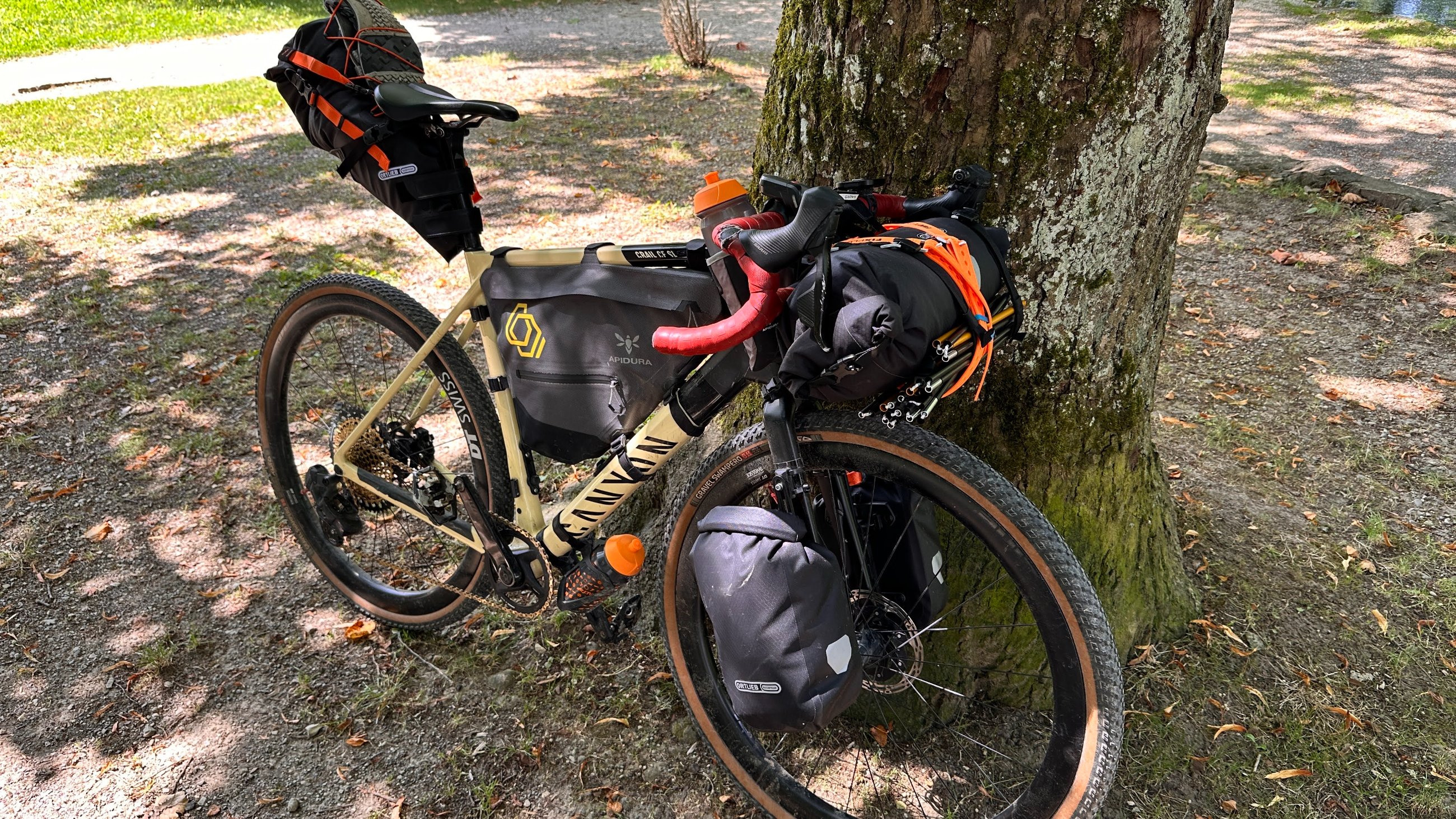(Ich wiederum frage mich gerade, ob ich die Rahmentasche nicht doch eine Nummer größer nehmen sollte. Habe die 3,8 Liter bestellt, weil ich Sorgen wegen des hinteren Rahmendreiecks hatte. Da ist aber noch etwas Platz, vielleicht passt auch die 4,5-Liter-Version.)