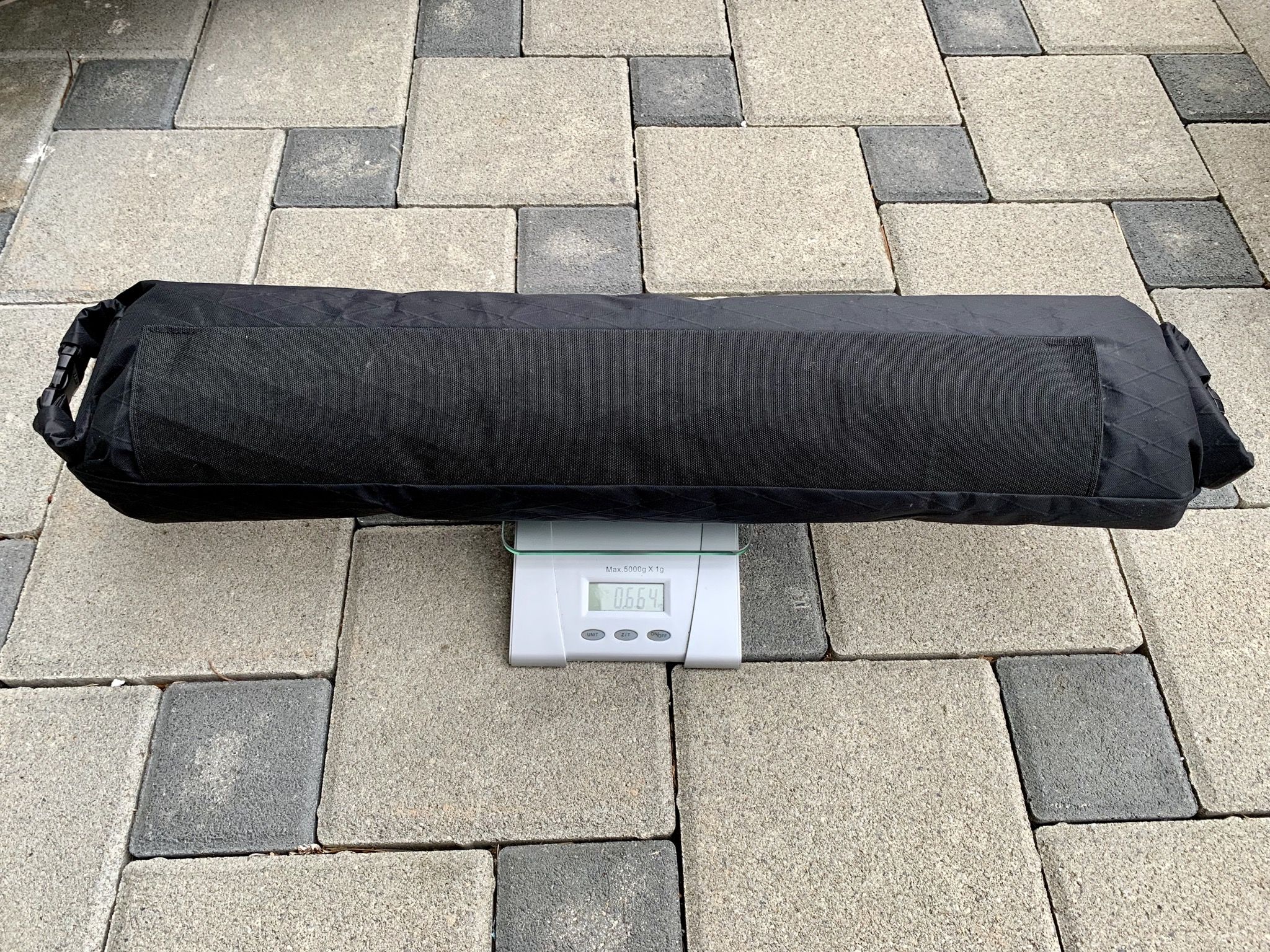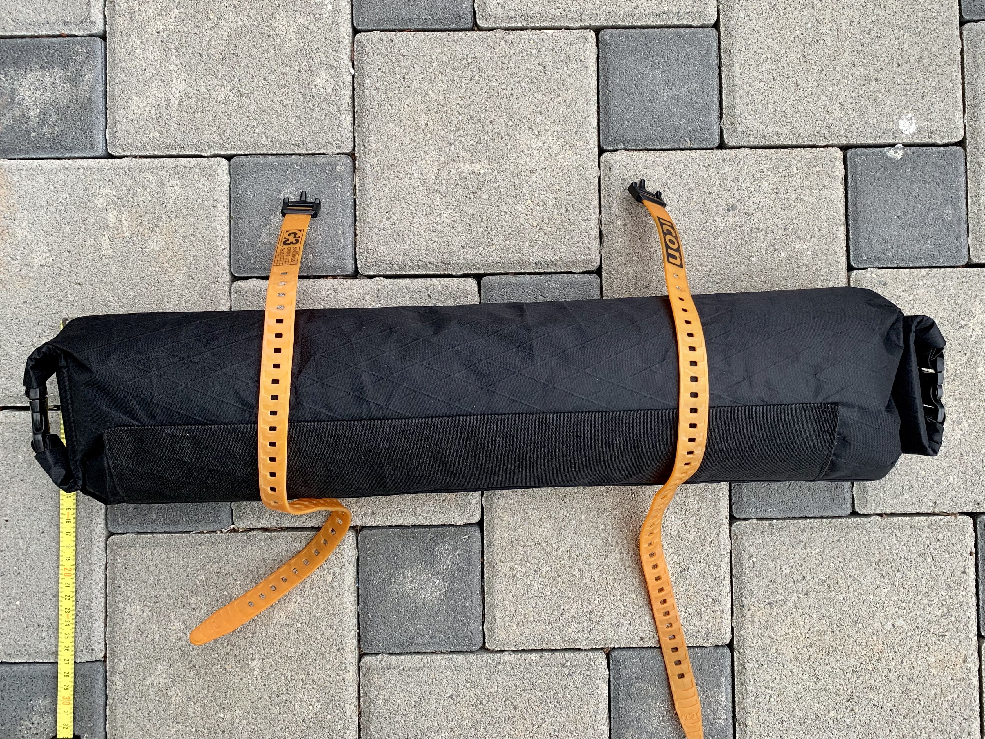 Ich wollt euch nun das Resultat meines Wunsches nach einer custom Lenkerrolle vorstellen. Der Durchmesser ist nun „nur“ 13cm. Die Länge wie geplant 50cm gerollt. Momentan hab ich meinen Cumulus Schlafsack und die Thermarest Matte drin.