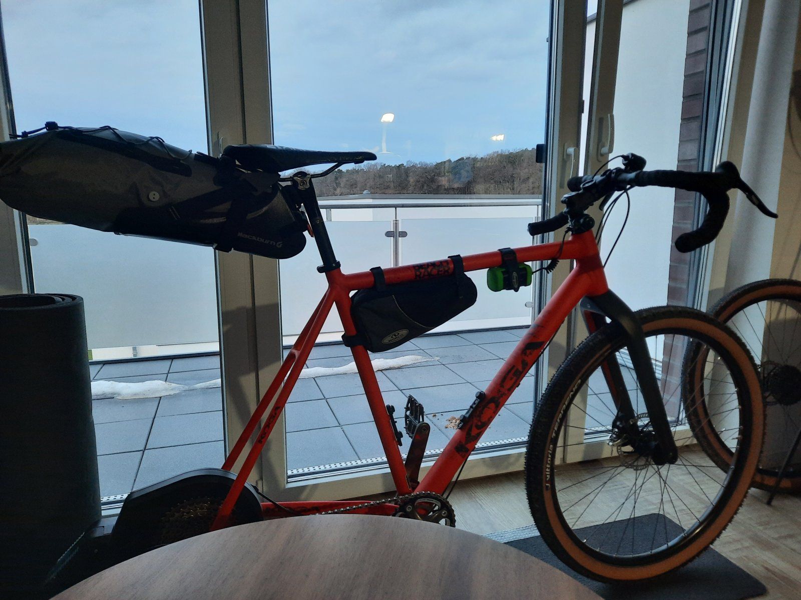 Bei offenen Schaltzügen am Oberrohr solltest du einen schmalen Liner über den Kabelstrang ziehen, dann gibt es auch keine Probleme mit der Tasche. Wenn du keine Lust hast das Kabel neu mit Liner zu ziehen schneide den Liner spiralförmig auf und wickle ihn dann so drum. Das funktioniert recht gut und entkoppelt so die Scheuerstellen zum Klettverschluss.