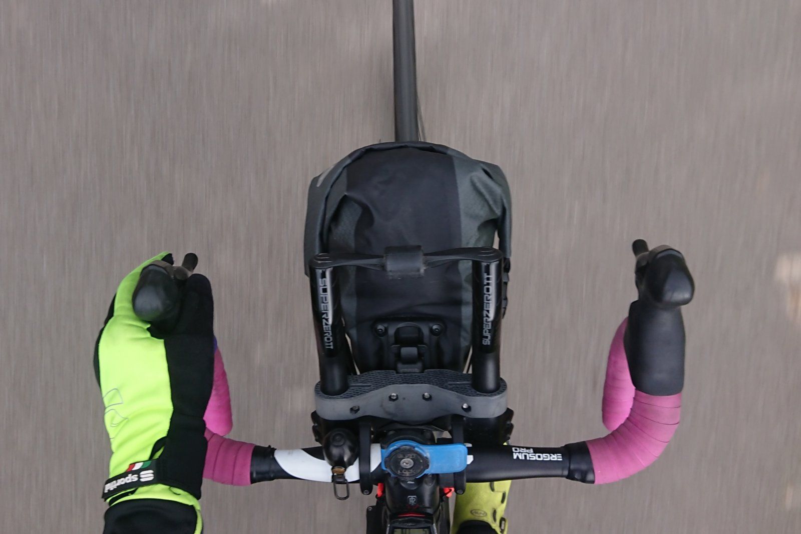 Lenkertasche für unter den Oberlenker montierten Aerobar.