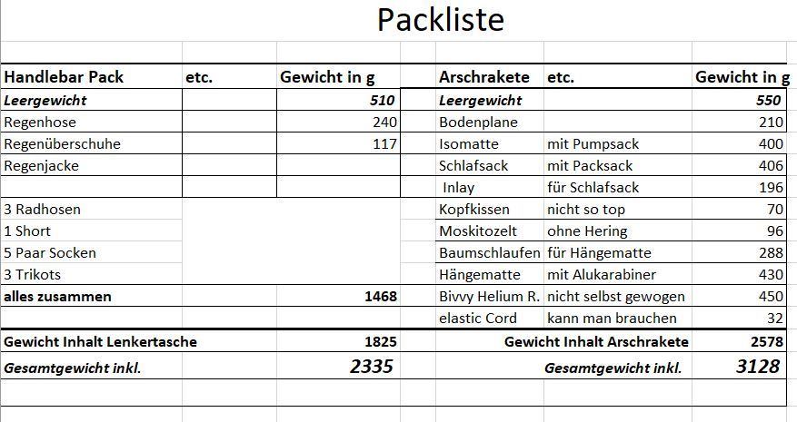 Gerade mal alles verpackt und gewogen. Ich finde ich bin mit dem Gewicht super. Bleibt die Frage.. Hängematte Ja oder Nein.
