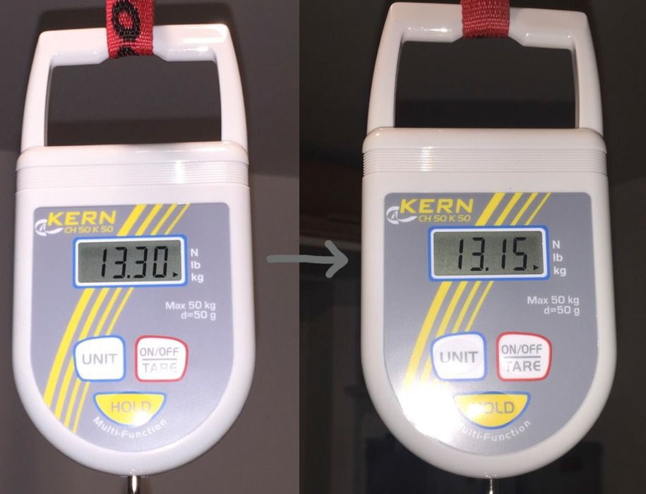 Lohn der Mühe: fast 150g weniger Gewicht!