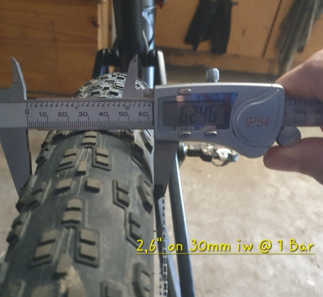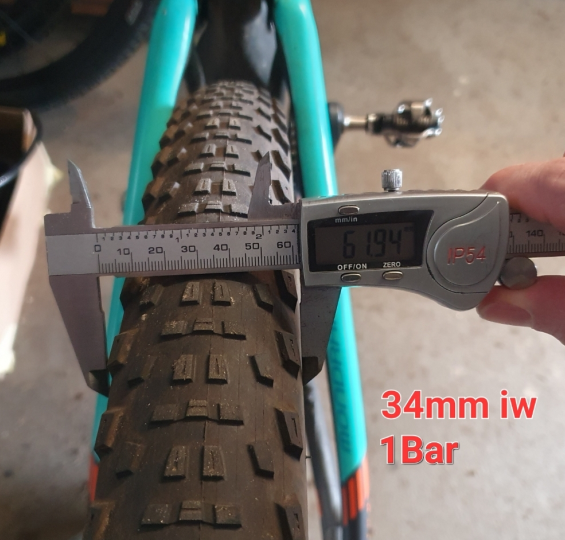 Habe die mal aufgezogen und mit ordentlich Druck stehen gelassen. Auf meiner 26mm felge habe ich grad Rush und Boost in 2.4 drauf. Die messen beide quasi identisch und zwar knapp 61 breit und 55mm hoch.