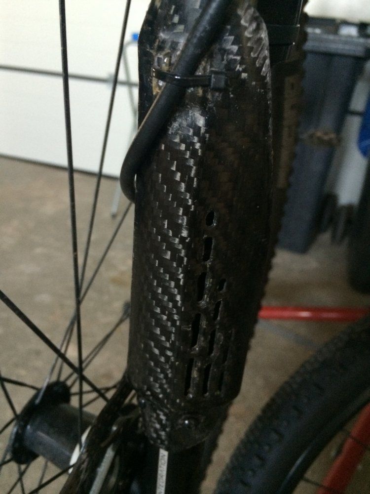 Bremsleitung hat ordentlich Farbe an der Lefty abgetragen, weil ich da vergessen habe mit Schutzfolie abzukleben.