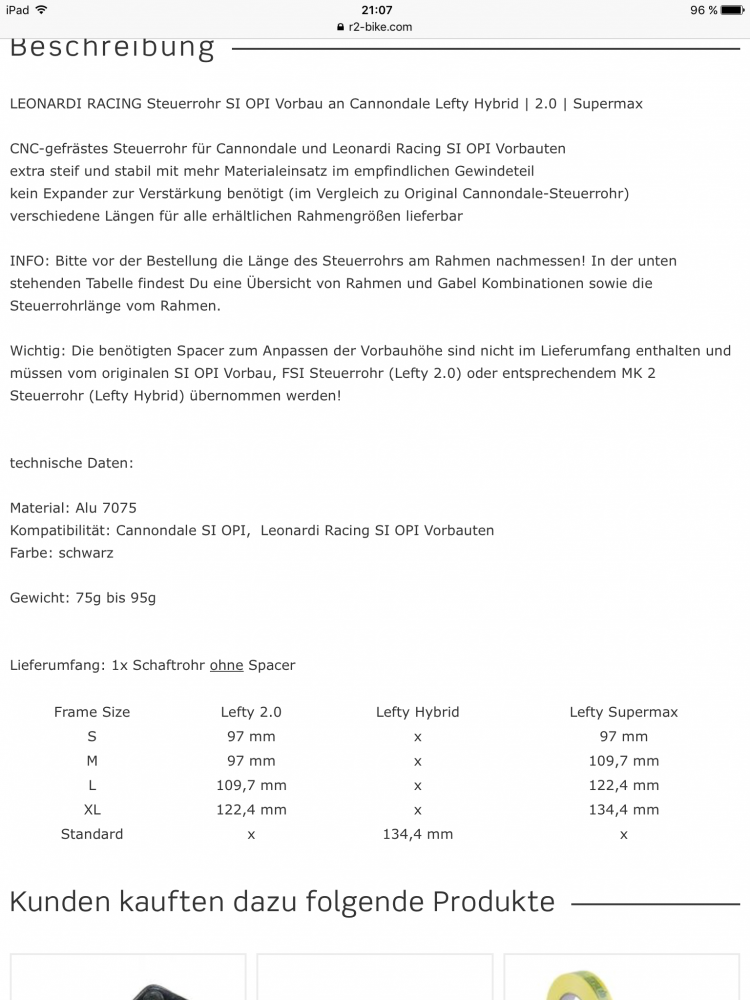 Heute ist bei mir das neue Steuerrohr der Lefty 2.0 von Leo Racing angekommen.