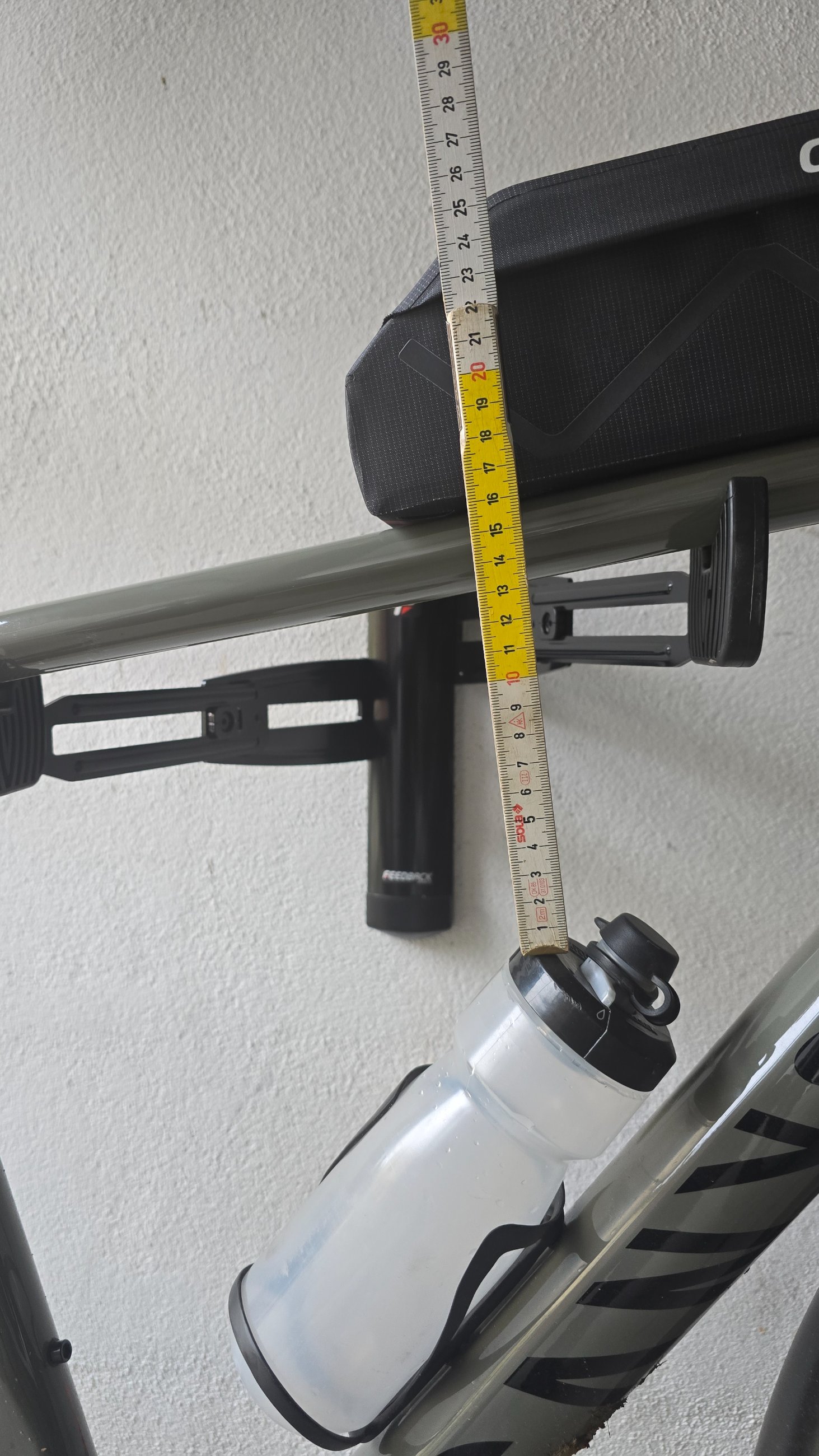 Reden wir von der gleichen Tasche? Ich meine die, die ich auf der vorigen Seite auf meinem Rad montiert habe. Da passt definitiv nur eine Flasche, und zwar nur ne kleine.