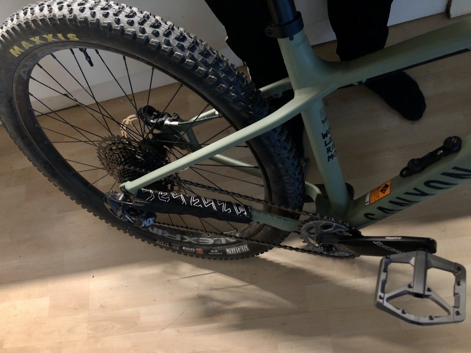 Ok, die 330g für die Pedale (Crankbrothers Stamp 1) kommen noch zu der Canyon-Werksangabe von 14,78kg dazu - bleiben immer noch 700g mehr als angegeben (Gesamt 15,8kg).