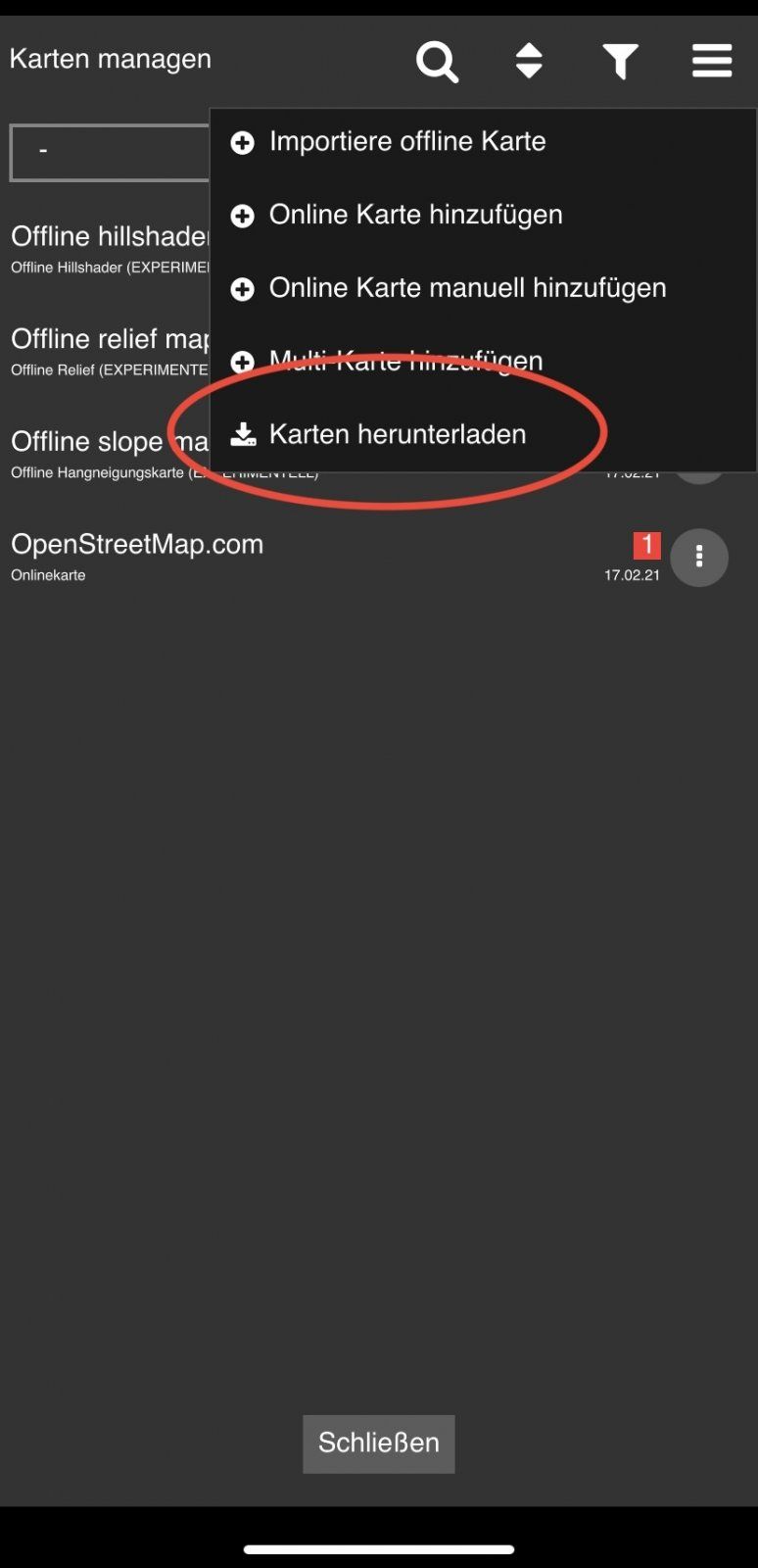 Dein Handy wechselt wieder in die App und die Karte wird heruntergeladen: