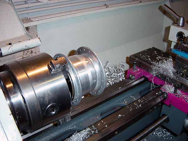 Jau, die neue 8 Gang in der Sportversion mit XT-Laufflächen usw. Wer will aber schon in einem Ignaz ne post-mpderne matt-graue Nabe drinn haben? Nach dem abdrehen und polieren sieht die jetzt klassischer und total glitzernd aus![]()