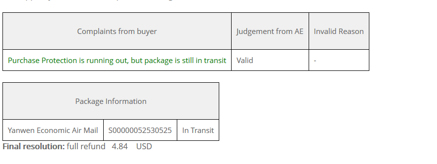 • Aliexpress hat sich erst gestern eingeschaltet, und ohne weitere Diskussion zu meinen Gunsten entschieden:
