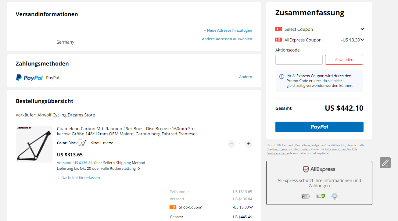 Meine Bestellungen bei Ali hab ich jetzt erstmal auf Eis gelegt. Habe keine Lust für Kassetten, Ketten und Bremsbeläge die 6€ an den Zusteller zu zahlen. Hat von euch schon jemand auf Selbstverzoller umgestellt? Mein zuständiges Zollamt ist nur 3km entfernt. Für mich also wenig Aufwand und wenn ich pro Lieferung die 6€ sparen kann, dann lieber öfter beim Beamten vorsprechen... Hat jemand von euch aktuelle Erfahrungen als Selbstverzoller gesammelt?