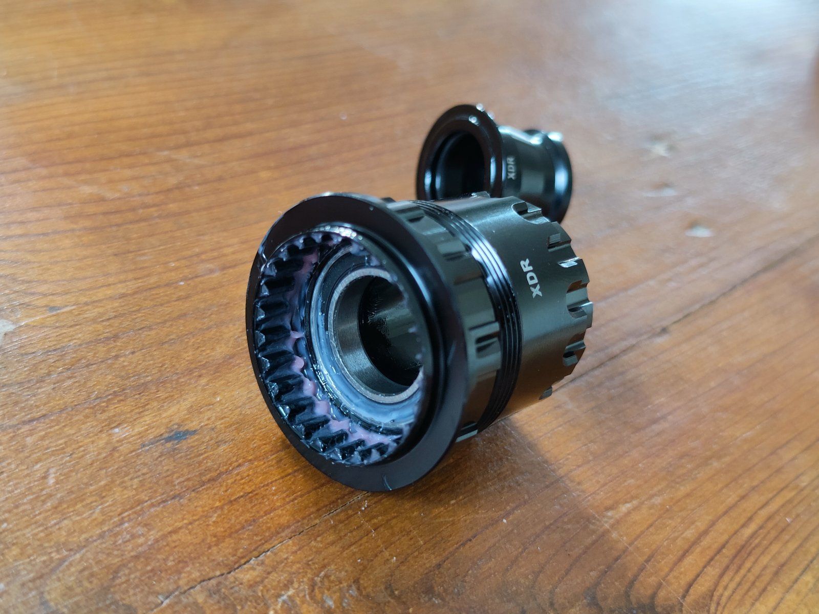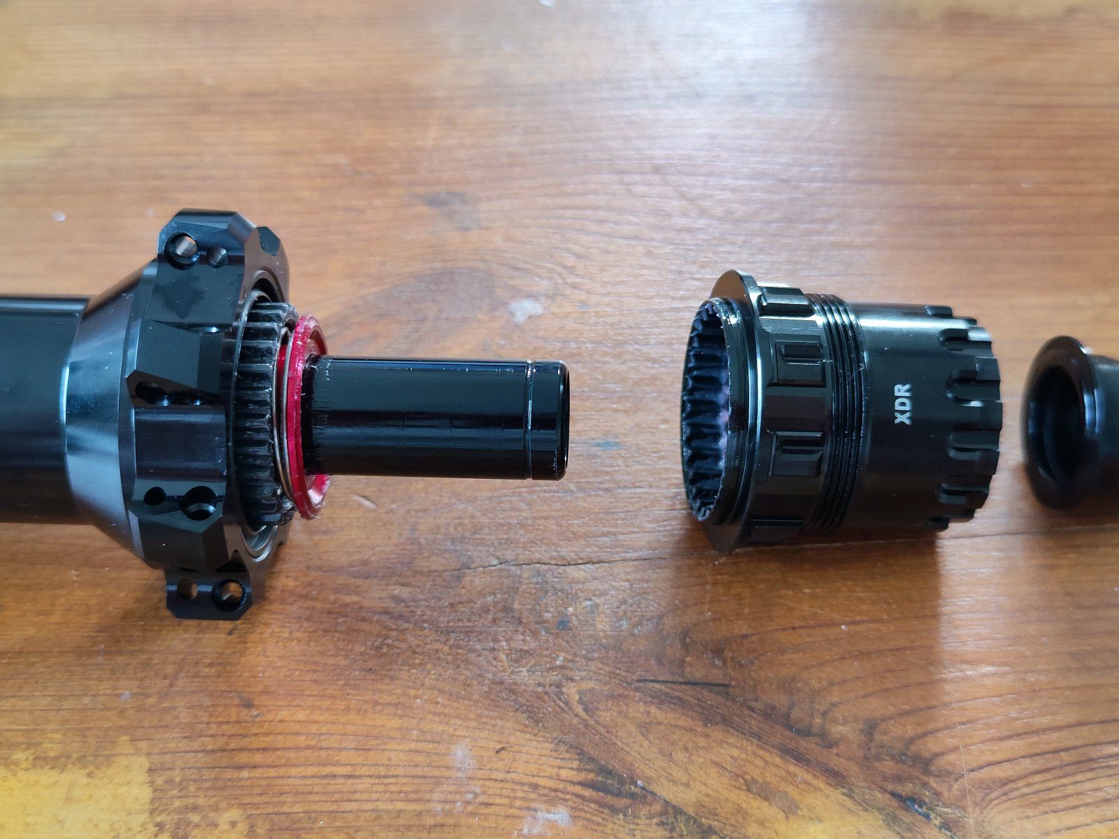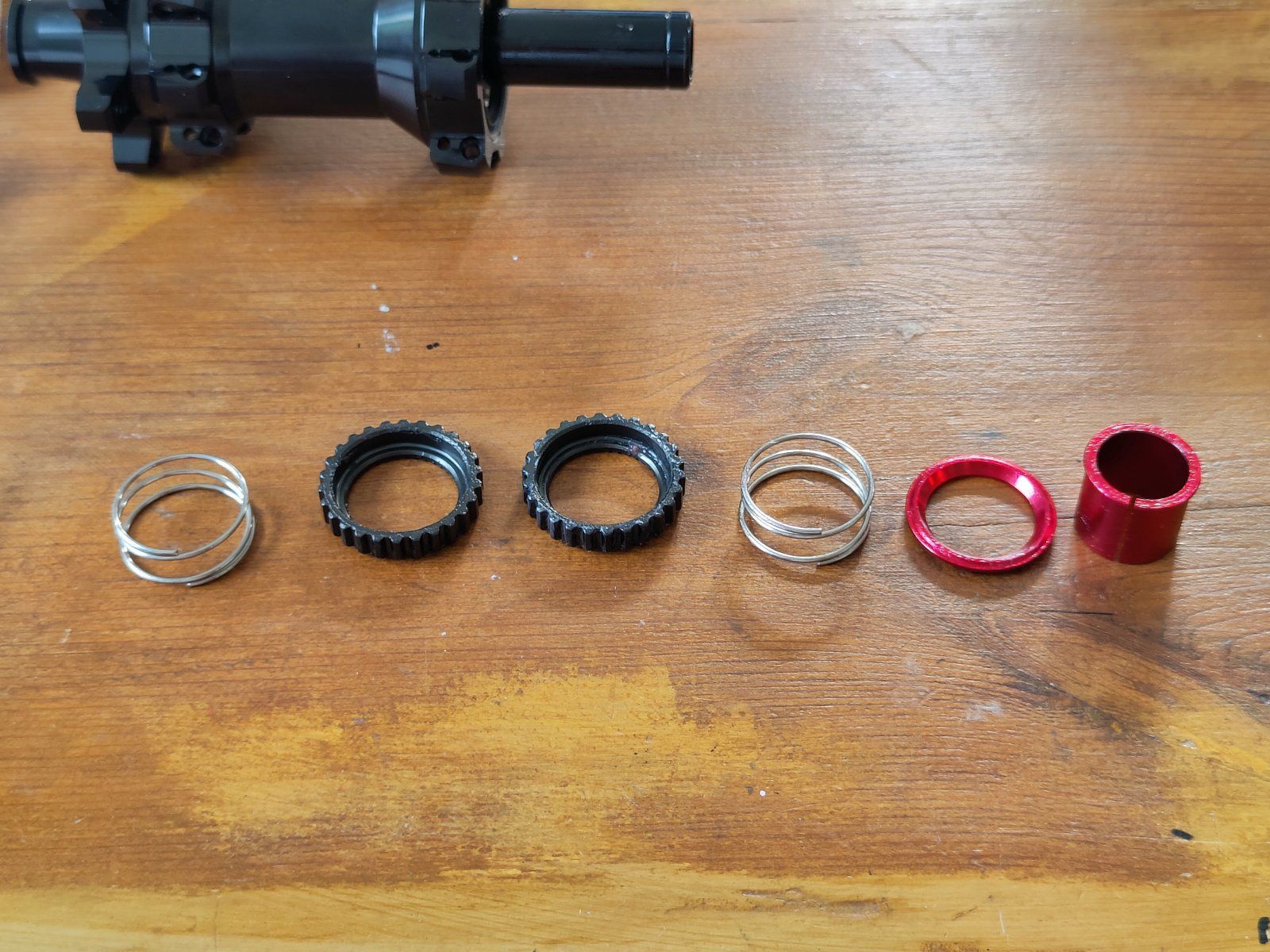 Ratchet ähnelt dem von DT, ist jedoch anders auf der Welle befestigt. Roter der das Ratchet zentriert besitzt einen Kragen und einen roten Sicherungsring. Federn sind nicht konisch. Dichtungsaufbau am Freilauf sieht etwas einfacher aus als bei DT. DT hat hier wohl eine Labyrinthdichtung.