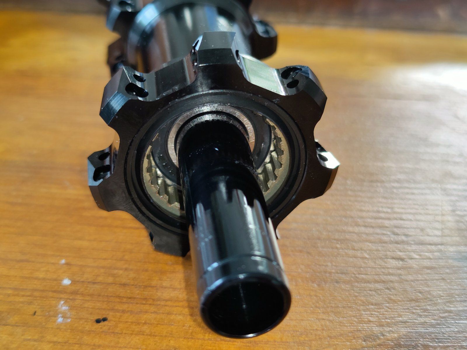 Verarbeitung ordentlich. Sehr kantig die Teile, aber ist wohl das Design. Freilauf sieht von den Fräsungen ziemlich nice aus. Unterschiedliche Farben bei den Lagerdichtungen, unterschiedliche Qualität? Außen ist rot, innen schwarz.