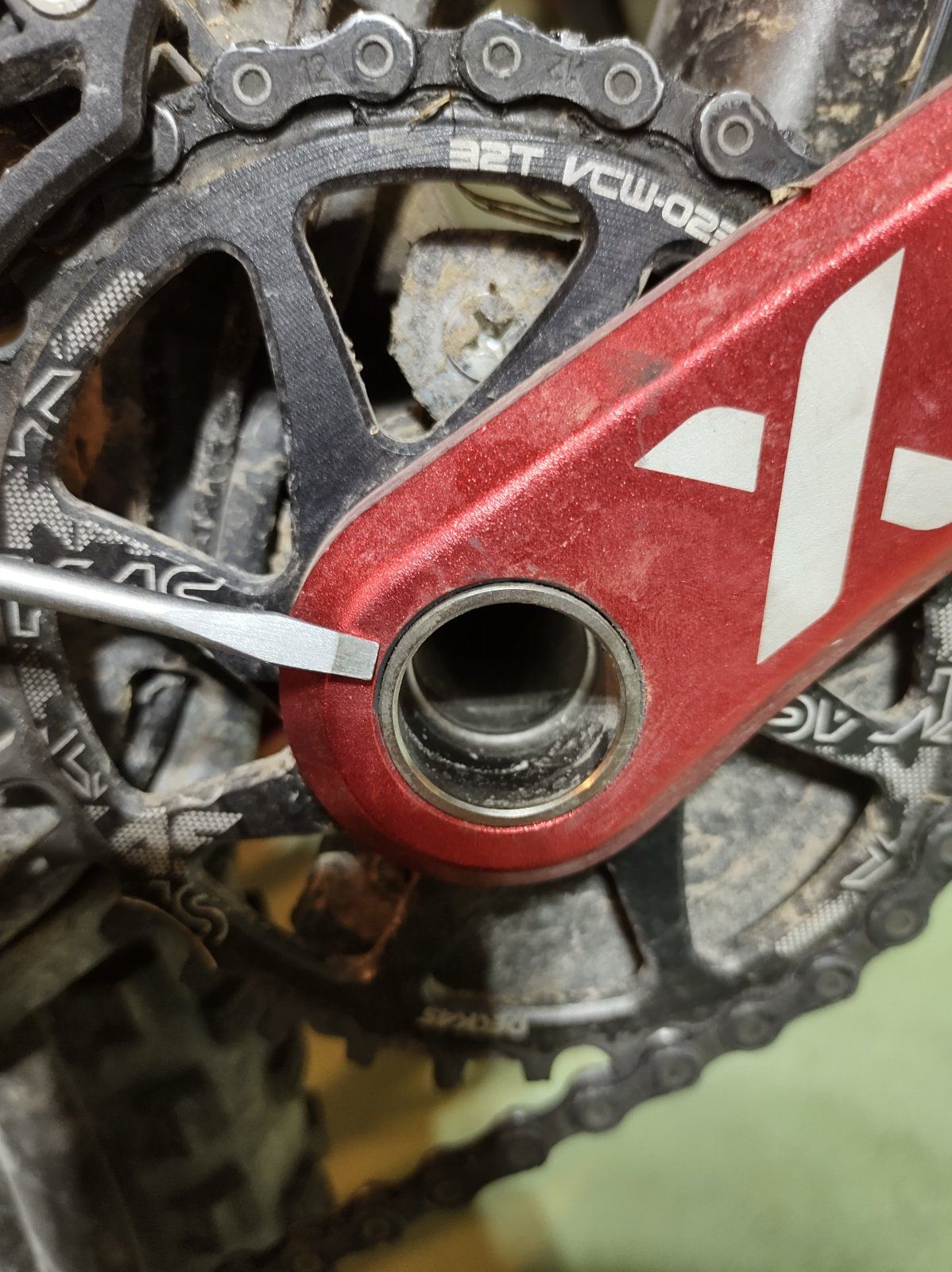 Optisch ist sie noch einwandfrei, hat aber auf der Antriebsseite Spiel zwischen Welle und Kurbel.