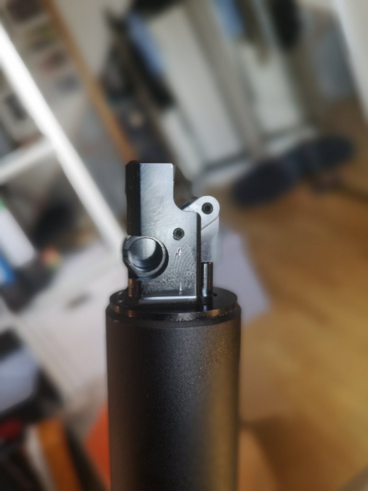 dass sie also hakelig ausfährt liegt nicht am fett - is keins drin. der auslöser ist auf die kolbenstange geschraubt, der stab im inneren aktiviert den klemmmechanismus. die buchsen sind aus kunststoff: die untere ist aufgepresst und läuft mMn spielfrei, bei der oberen ist deutlichen spiel spürbar. nix mit wechseln oder so. wahrscheinlich wird die stütze oben mehr von der überwurfmutter geführt. mit etwas fett läuft sie schon gleich bisschen geschmeidiger.