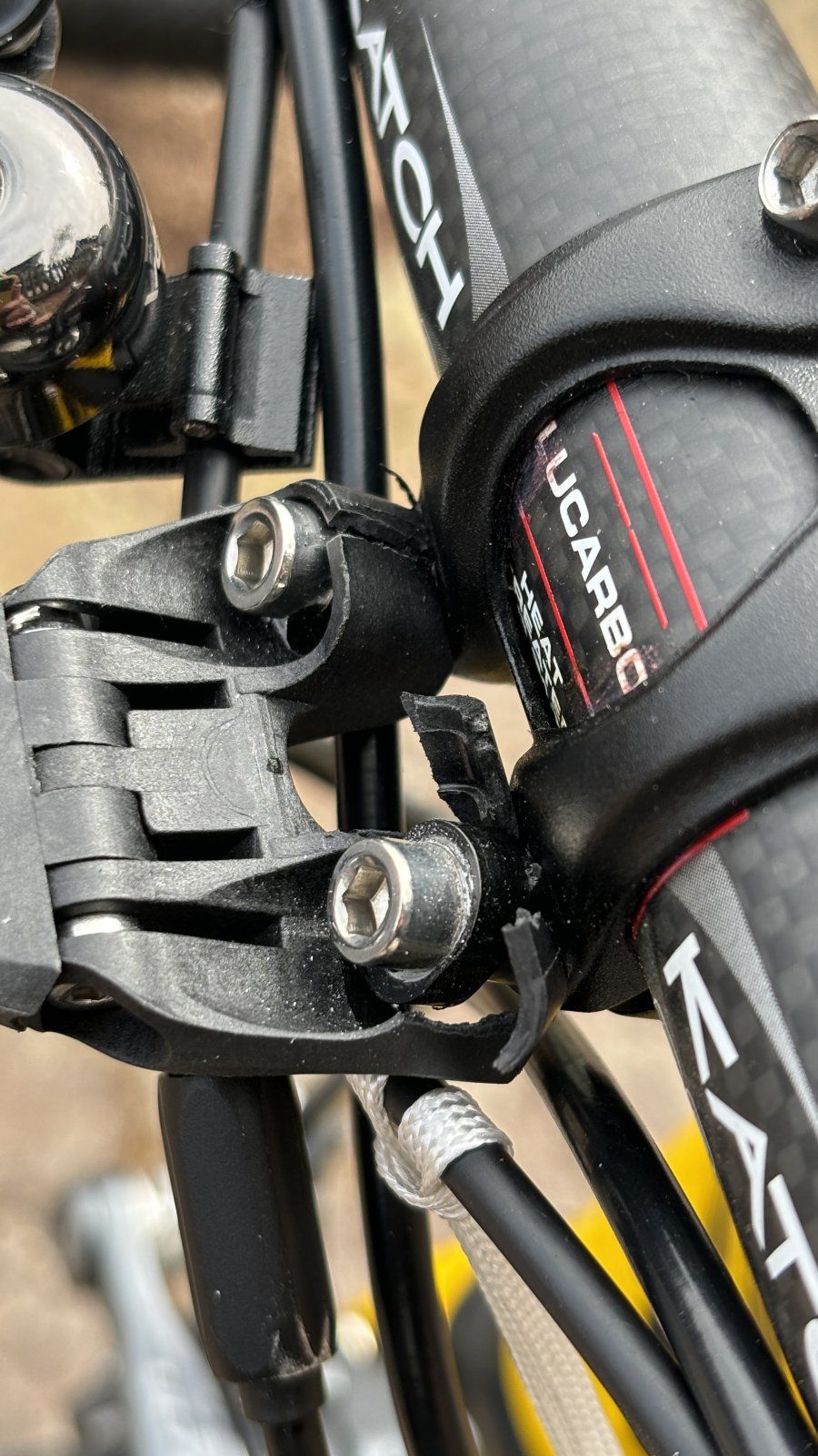 Trotz Alu-Insert ist der Halter und die Distanzscheibe gebrochen, was die Lenkerklemmung löst.