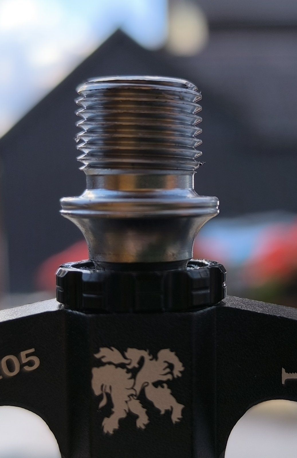Das wäre hier auch gescheit gewesen.Da wirds nix geben, normal wird mit dieser Mutter die komplette Achse aus dem Pedalkörper geschraubt.