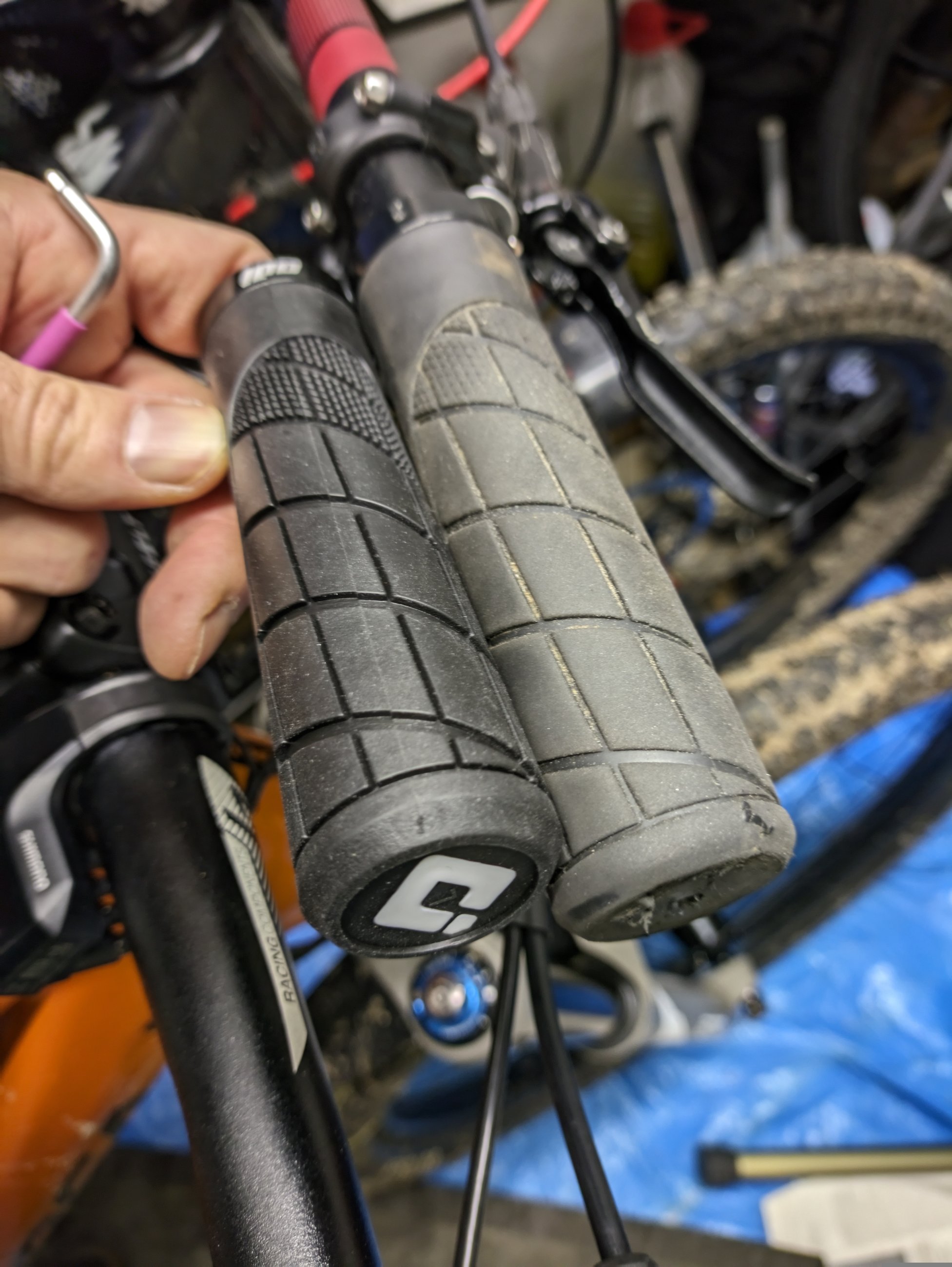Und selbst wenn der Griff dann fest ist, bewegt sich die Gummihülle ein wenig vor und zurück in "Drehrichtung"und das ist einerseits störend und machen die montierten China Odis definitiv nicht. Die haben ja auch keinen separaten Lenkerstopfen und haben bei mir jetzt eine Saison mit viel Bikepark und zwei Wochen Finale problemlos ihren Dienst verrichtet.