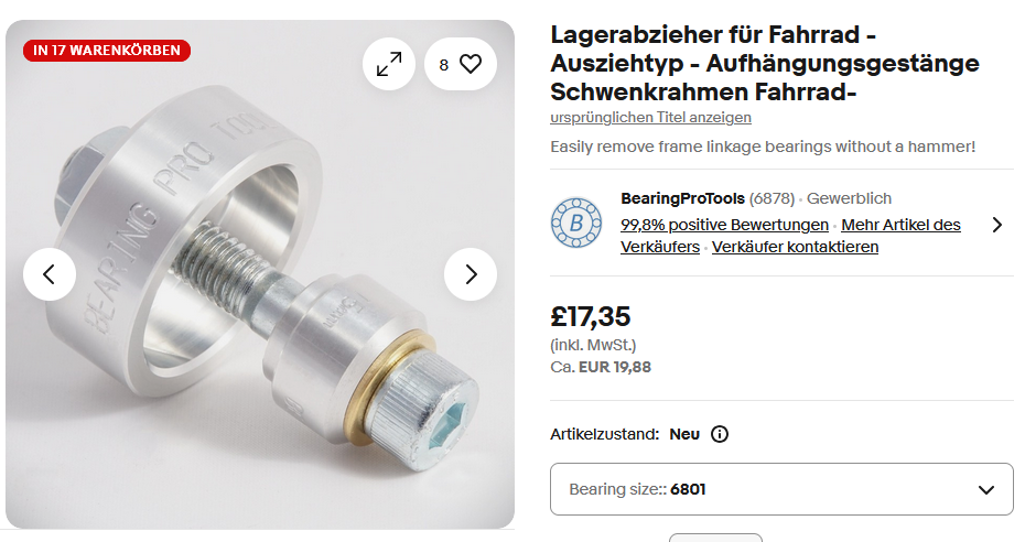Ich wollte nohmal kurz ein Feedback geben.Einzeln gibts die passenden Drifts hier: https://www.bearingprotools.com/col...th-extended-inner-race?variant=40736813514857