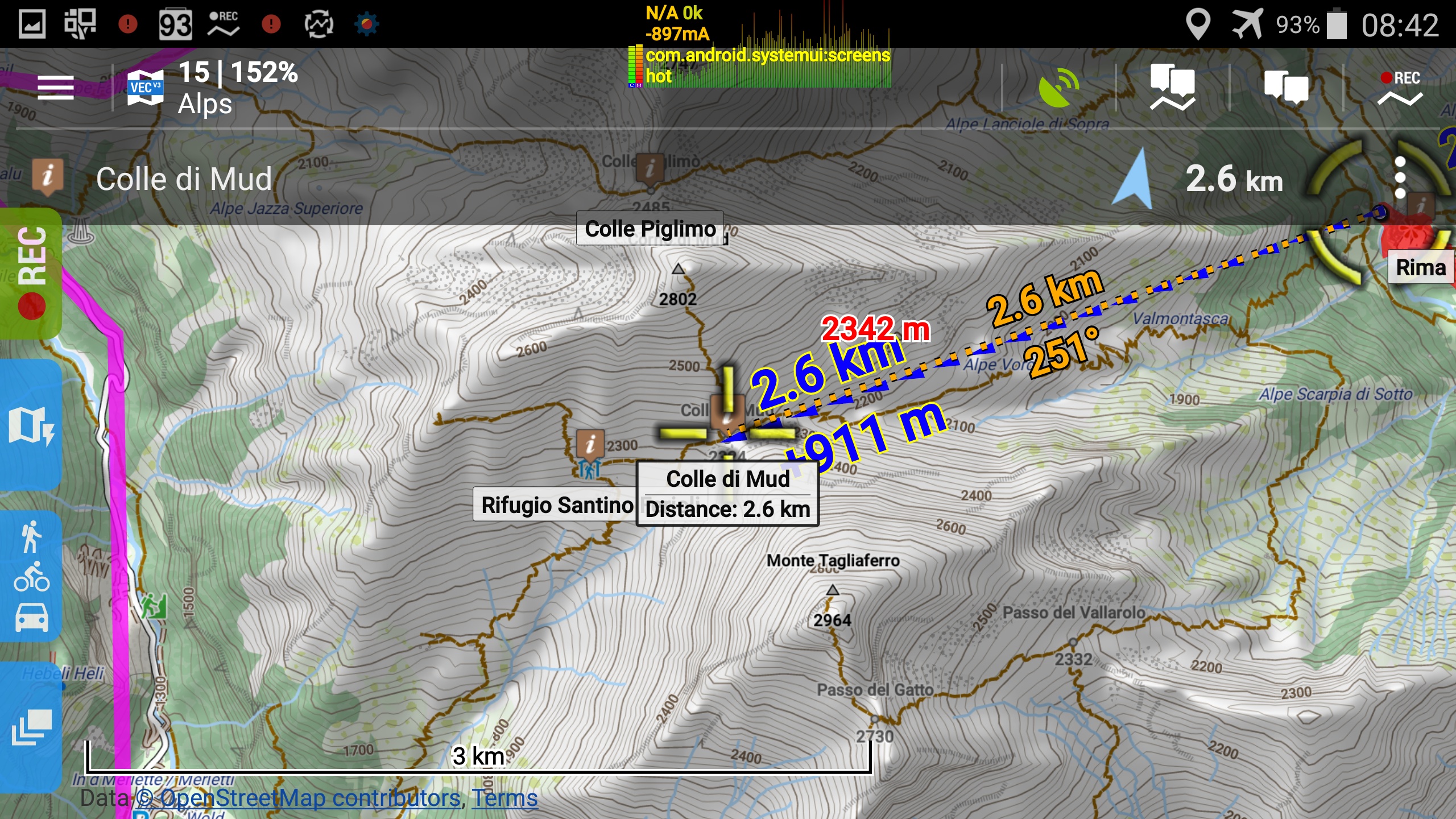 - Über Passo del Maccagno (2495 m), Colle Lazoney (2395 m), Colle della Mologna Grande (2364 m) zum Rifugio Rivetti(2201 m)