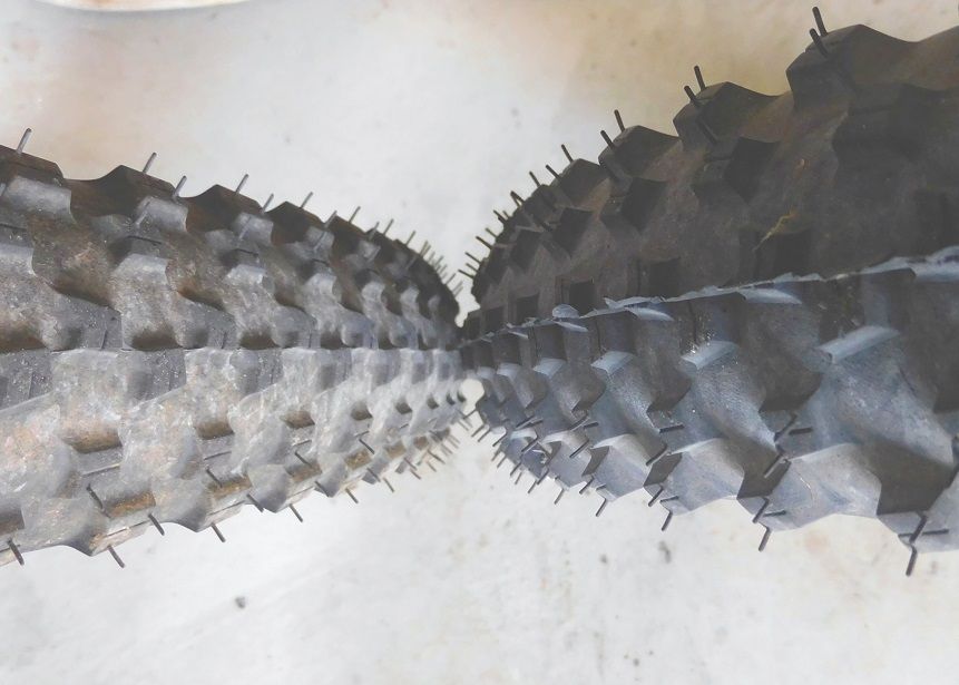 Conti hat aber auch schon den Tipp gegeben, den CK nach vorne zu machen und den MKIII nach hinten. Wichtig: beim CK geht es nur um den 2.3er. Der 2.2er hat erheblich kürzere Stollen, ein Vergleichsbild hatte ich ja bereits eingestellt.
