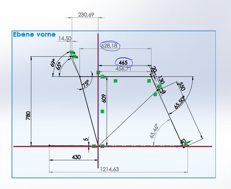 Ob man mit virtuellem oder reellen Sitzrohwinkel die Geometrie nachbildet spielt keine Rolle. Alle Winkel und Längen definieren eindeutig, und/oder sind abhängig voneinander. An einem virtuellen/reellen Sitzrohrwinkel kann es nicht liegen.Wenn Du die Geometrie über den Reach aufzeichnest erhältst exakt den Radstand wie angegeben.