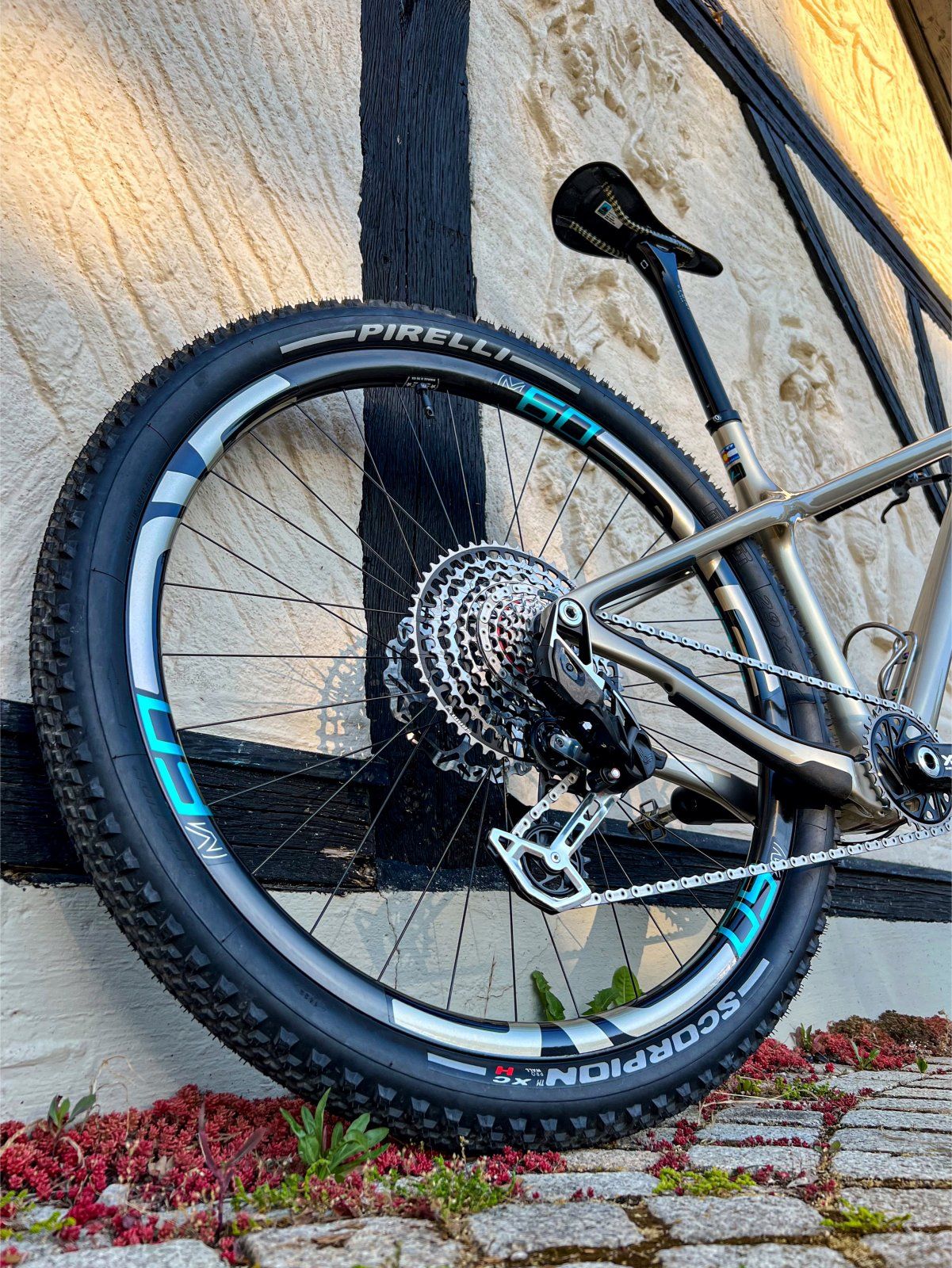 Das Yeti gefällt mir gut, auch wenn ich den Rahmen in türkis und die jetzigen türkisen Elemente andersfarbig gestaltet hätte. Geht aber auch so voll in Ordnung. Einzig das Mausgrau der XTR Bremsen will mir an dem Rad nicht wirklich gefallen.