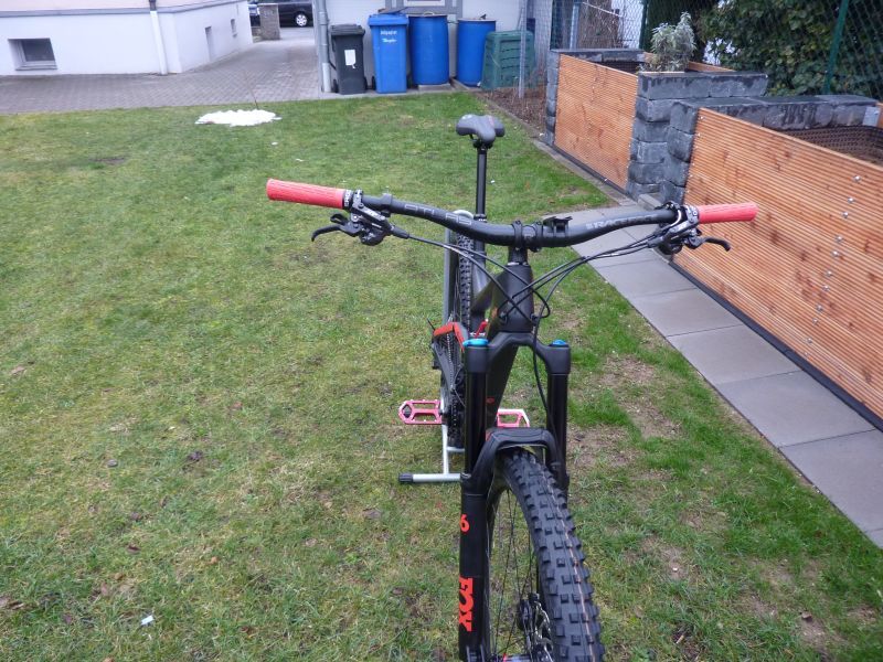 So, wollte mich wieder zu Wort melden. Da das Tretlager, wie andere geschrieben haben, sehr tief ist und meine Zughülle (diese Verlegung ist nicht sehr durchdacht) gleich bei der ersten Tour beschädigt wurde, habe ich nun einen Aquarium-Luftschlauch als Schutz darüber gezogen. Was ich noch geändert habe: Lenker Race Face Aquila, 820mm mit 35mm Rise, weil mir der Originale zu niedrig war und Ergon GE1 Griffe. Sonst passt es. Beim Verschleißteilwechel im nächsten Winter kimmt vorne ein 40er Kettenblatt und hinten eine SunRace Kassette mit 11-50 Zähnen rein und der Umwerfer kommt weg