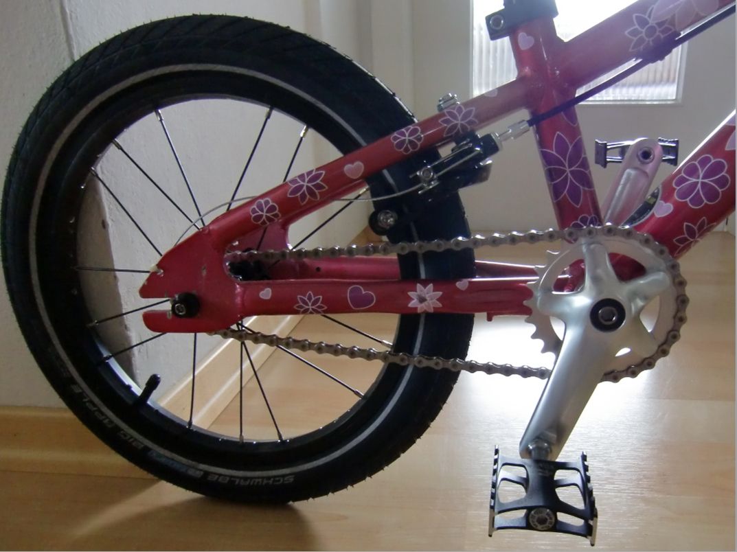 Also ich habe das natürlich genauso Probegefahren wie das 12" - Härtetest muss sein. Und wenn euer Zwerg nicht 80+kg wiegt, dann seh ich da keine Probleme. Die originalen Kinderradkomponenten sind ja eher dem Schwermaschinenbau entliehen, da kann man schon einiges weglassen bevor es instabil wird bei 20kg bis 25kg.