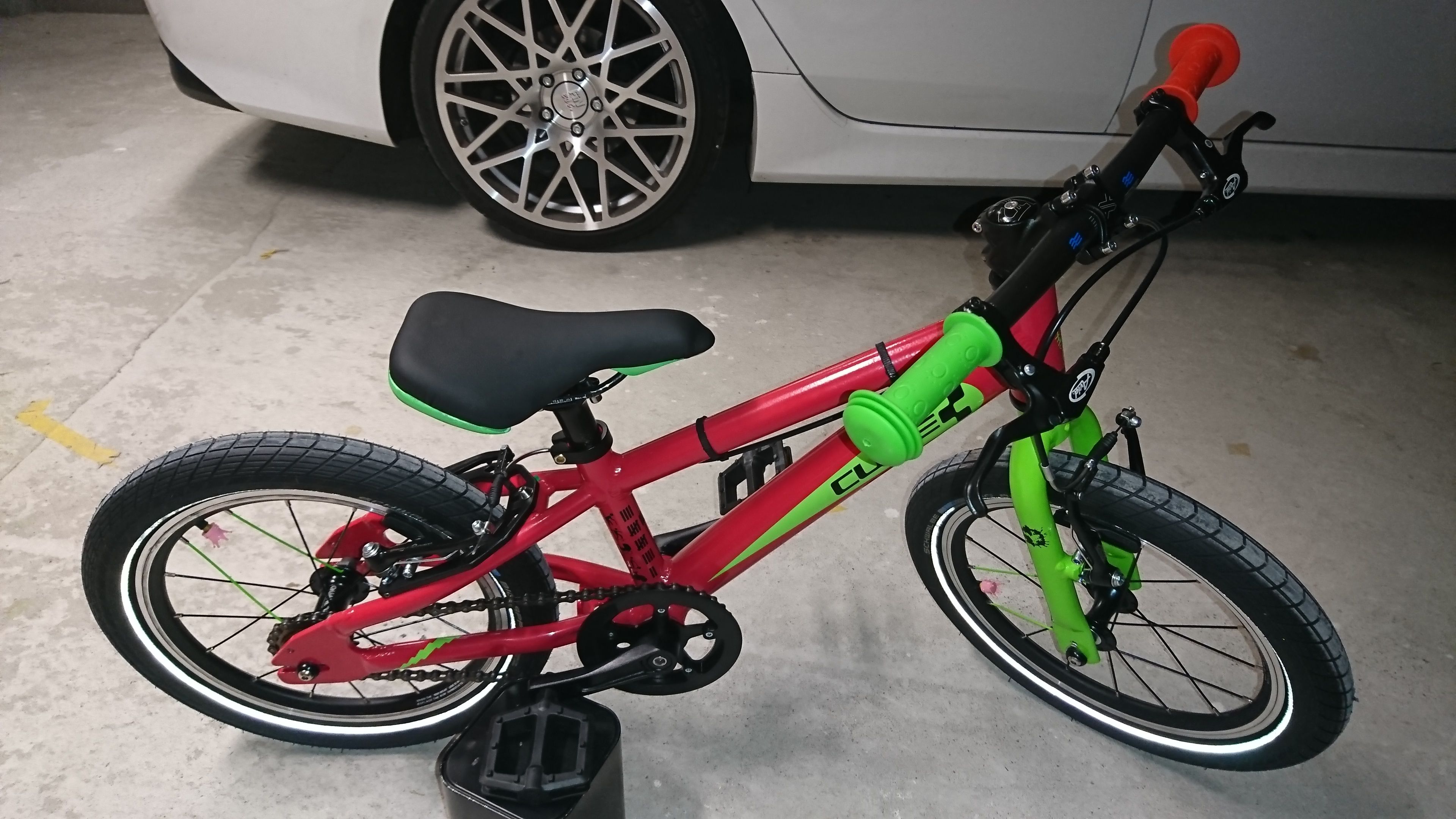 Eben fertig geworden. Neuaufbau eines mehrere Jahre alten Cube Kid 160. Sehr viel Spaß hat es gemacht und die Tochter ist begeistert. Gewicht nun ca. 6,5 kg.