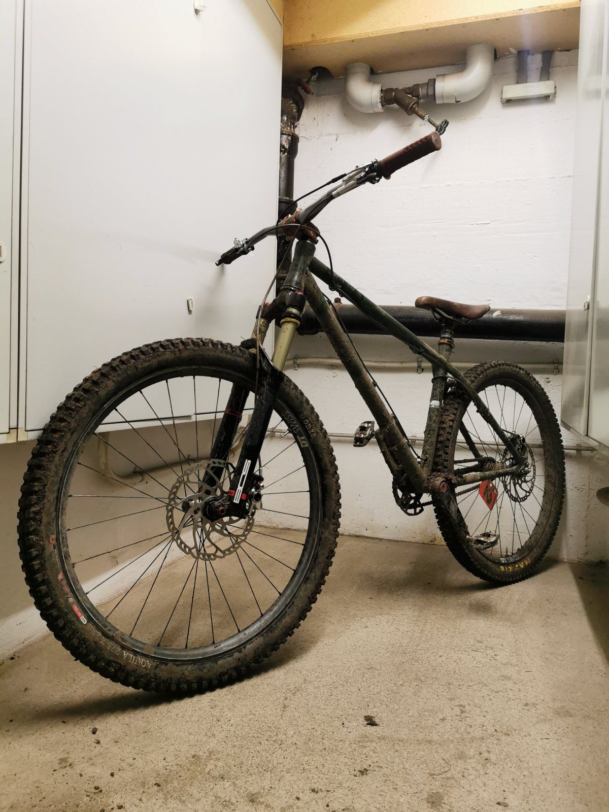 ich bin mit dem rahmen im laufe der zeit durch 6 gabeln von 180 mm / 3kg bis starr / 900g, drei laufradsätze in zwei größen, vier lenker, zwei kurbeln, vier sattelstützen und etwa 20