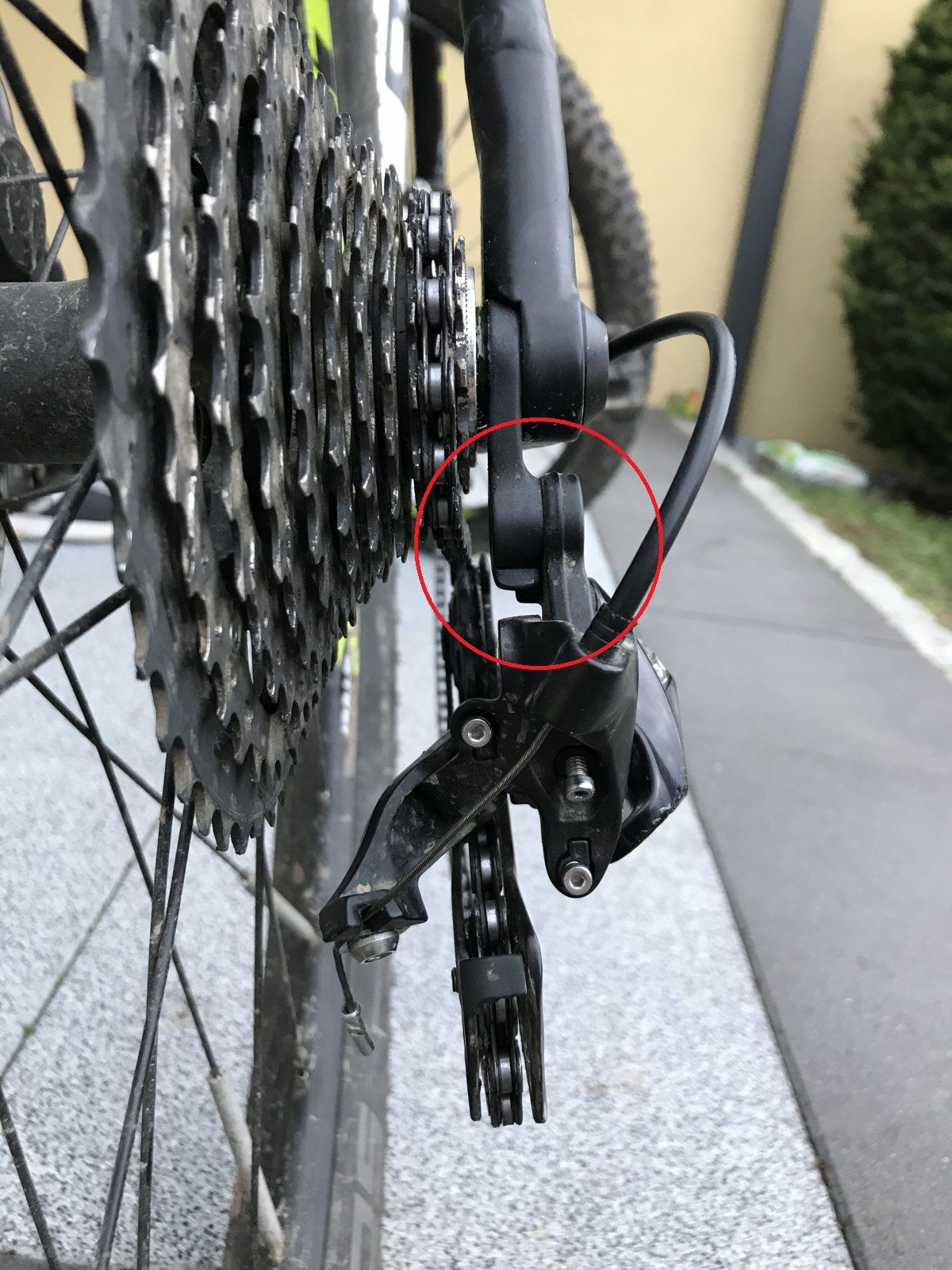 Wenn es dann noch immer nicht senkrecht ausgerichtet ist, wovon ich leider ausgehe, muss das Schaltauge geradegebogen oder getauscht und/oder der Käfig geradegebogen werden.