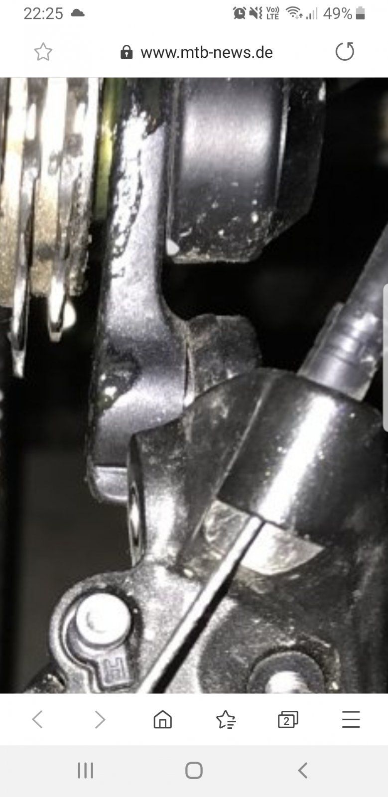Aber die B-Schraube, die die Vorspannung und den Abstand des Schaltwerks einstellt, muss über den Anschlag am Schaltauge. Das war mit "Schaltwerk falsch angebracht" gemeint. Das bedeutet, du musst das Schaltwerk abschrauben und etwas im Uhrzeigersinn gedreht wieder festschrauben. Dann kannst du mit dieser B-Schraube das Schaltwerk wieder richtig positionieren.