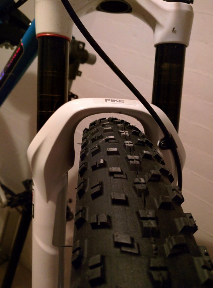 Der Reifen passt locker in eine Pike und eine DTswiss 29er Gabel.