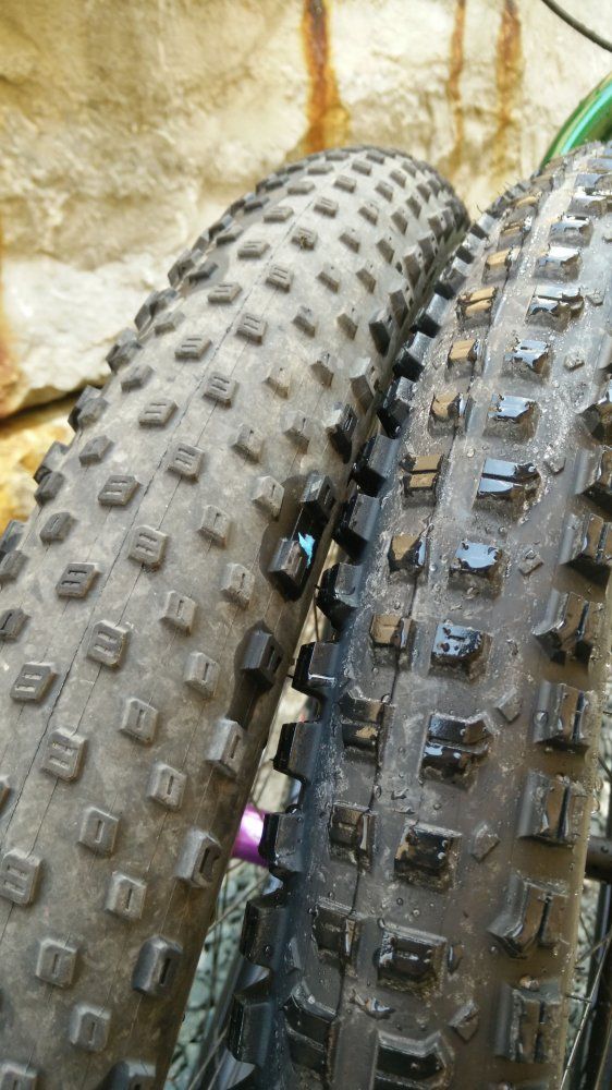 Hi, musste gerade feststellen, dass der Chupacabra, den ich vorne fahre bei best-bike-parts nicht mehr gelistet ist. Hinten fahre ich einen Vee Trax Fatty, den gibts in Niederlande zu bestellen: http://www.pilotcycleparts.nl/mountain/tires/