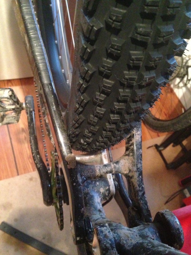 So, die B+ Testfahrt mit den Duro Miner am Specialized Enduro 29 ist bei Regen über die Bühne gegangen. Gelände nass und wurzeldurchsetzt. Die Duro Reifen haben eher mehr Profil als die anderen B+ am Markt. Am knappsten im Enduro Hinterbau geht die Kette an der Unterseite am Reifen vorbei. Mit diesen Reifen passt es aber noch ohne Offset-Kettenblatt.