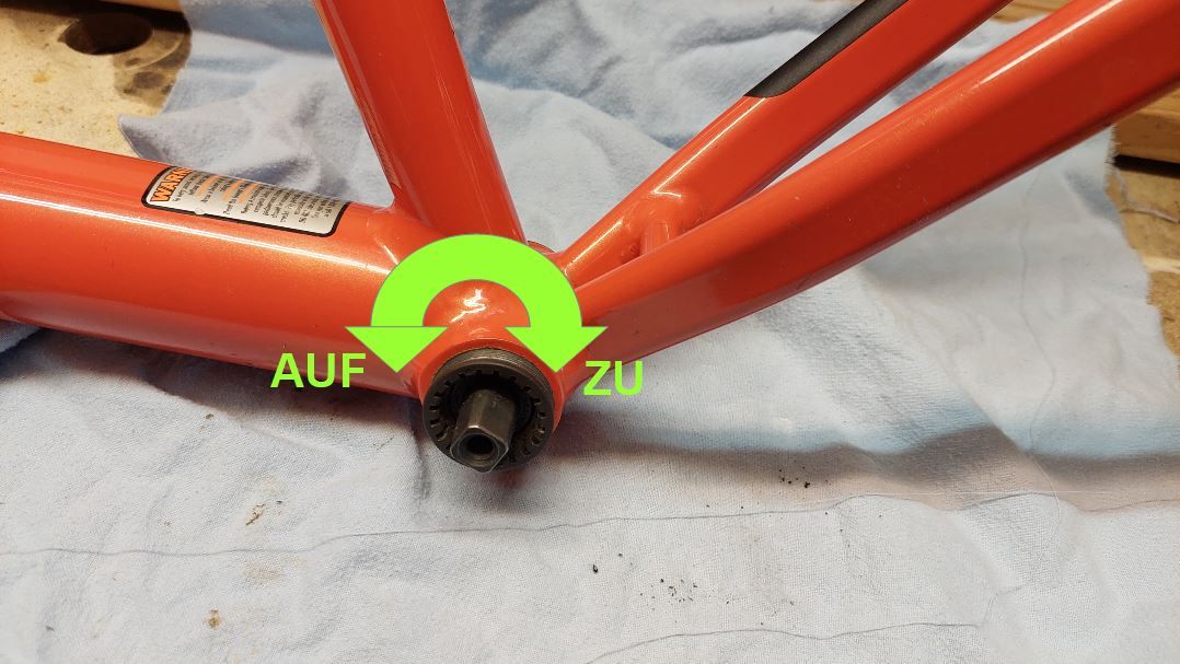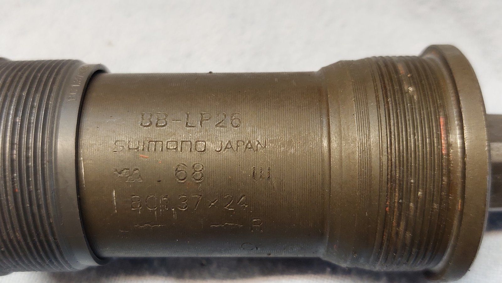 das Innenlager ist ausgebaut ... die Schraubrichtung habe ich mal im Bild festgehalten. Hat soweit problemlos funktioniert - hätte mit mehr Widerstand gerechnet 😅 Das ausgebaut Innenlager ist ein Shimano BB-LP26 68 BC1.37x24 - Achslänge 115mm