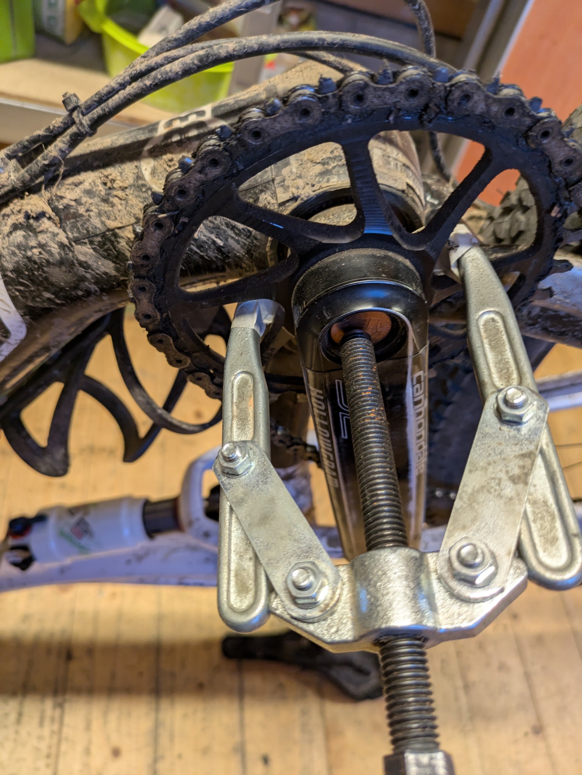 Dachte zuerst an die Nabenlager, hab aber noch keine Bestellt. Heute mam abgemacht Das Rad und am Lager selbst fühle ich keinerlei Spiel. Die Laufbahn des linken Lagers hat aber Eloxal verloren, also Abrieb. Die Gabel war vor etwa 20 Fahrstunden bei Doc Cannondale in Frankreich und wurde umfangreich renoviert. Der Fuß wurde nicht bemängelt.