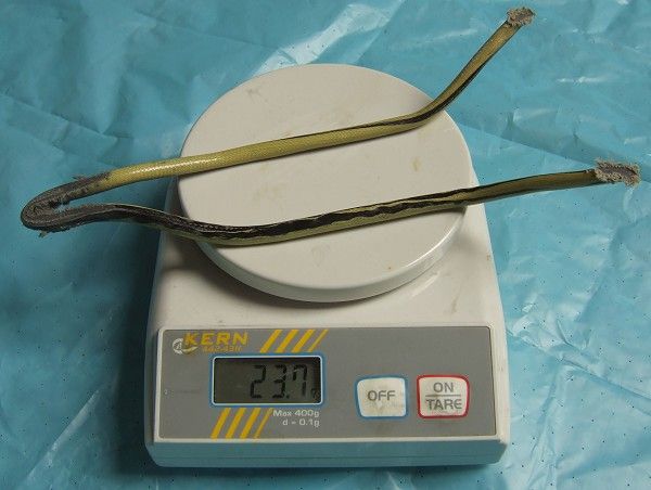 -2 Schwachstellen hat die Kombi noch: die „Nase“ ist zu schwach ausgefüht und die Satteldecke braucht mehr Fasern in Querrichtung, d.h. mit ca. 20gr Mehrgewicht dürfte die Kombi für einen 75kg-Fahrer stabil sein;