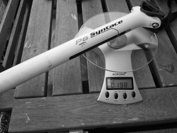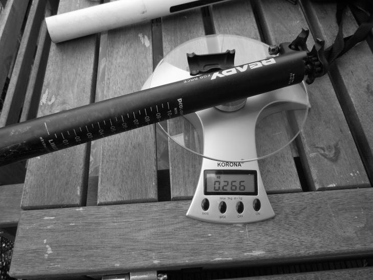 Original RfR- Stütze wiegt rund 260g und Originalsattel schlägt mit 315g zu Buche