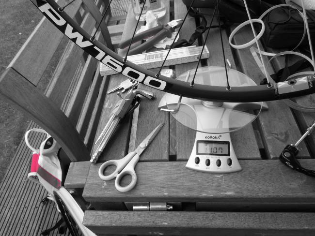 Aber bitte wie kann das Bike deiner Frau mit den ganzen Teilen drann nur 12.1kg wiegen wärend mein 130er Race (18Zoll) trotz leichtere LSR (Alpine v Pancho mit 1360g) auf 12,7kg mit Pedale kommt? Mit licht, kotflügel komm ich auf knappe 13.4kg