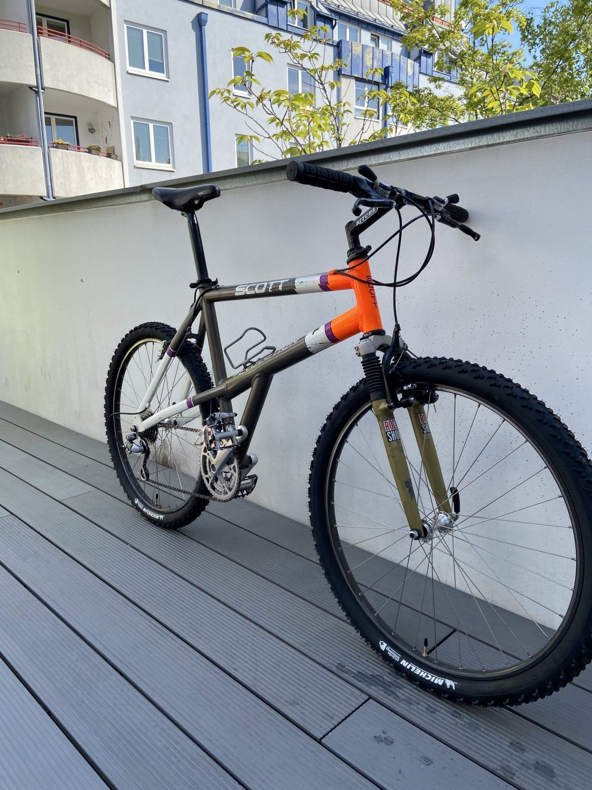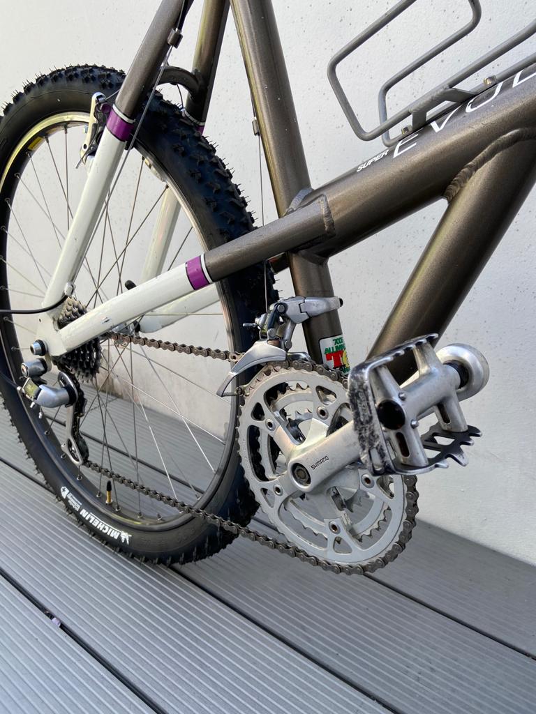 I don´t remember where I read a review about a green Nishiki BITD, which made me lust after one of these, but here´s the only pic I found in my stash of MBA (It was an article about future developments in mountain bikes):