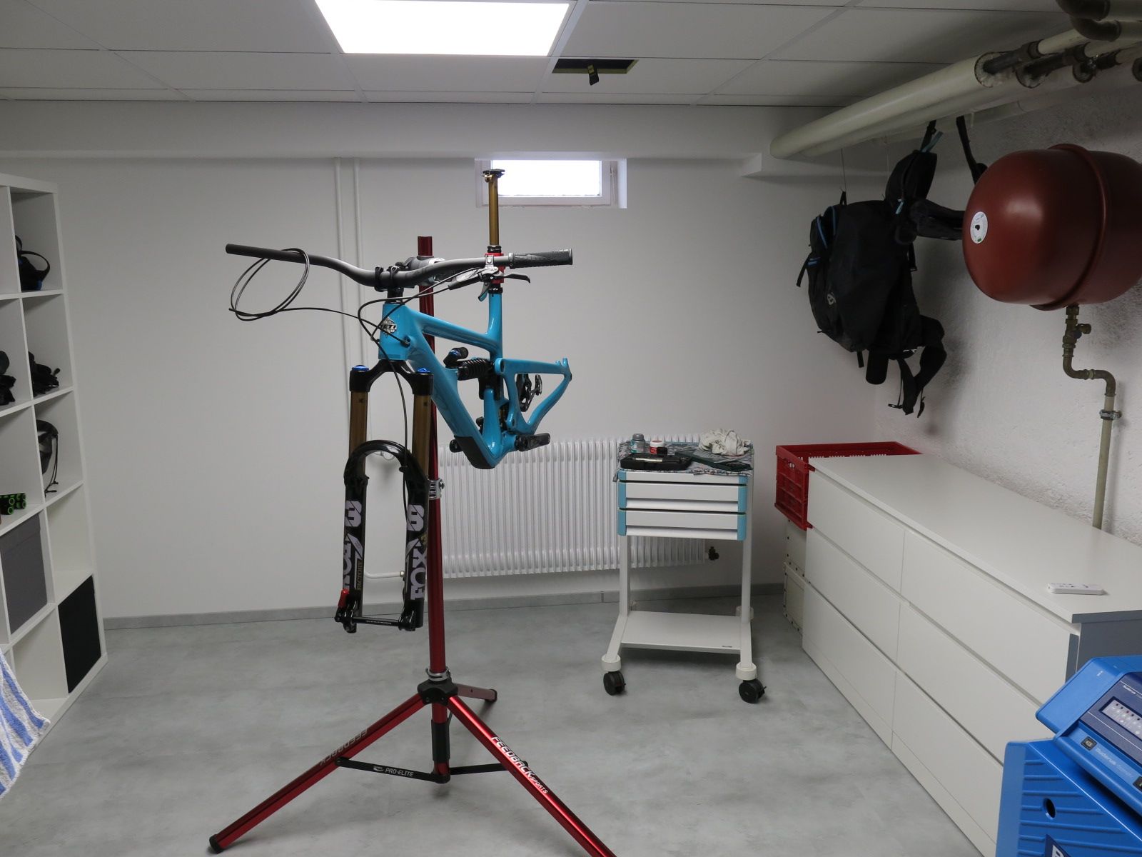 Mein Heizungskeller eignet sich nicht als Radwerkstatt, da der Brenner halb in der Türöffnung steht.