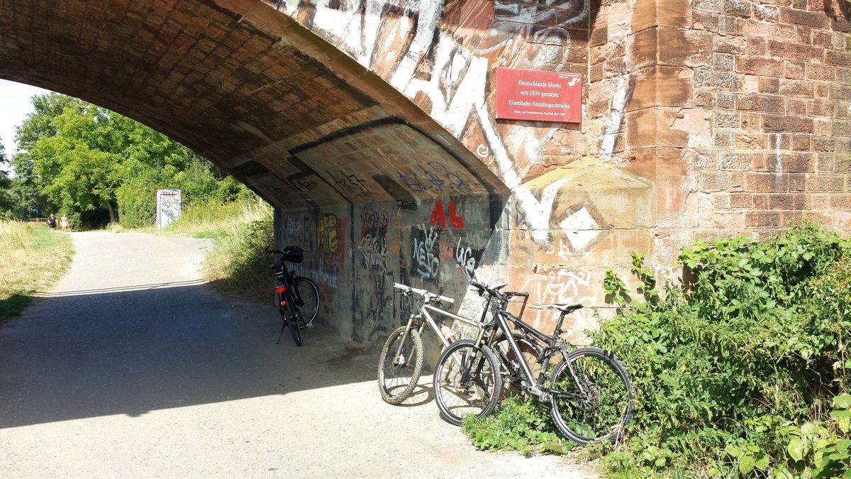 Wieder die alte Eisenbahnbrücke und die Kollegen mit nem Touringrad oder nem echt coolen Radon Fully komplett XT, aber jetzt mit Marathon Plus :eek:
