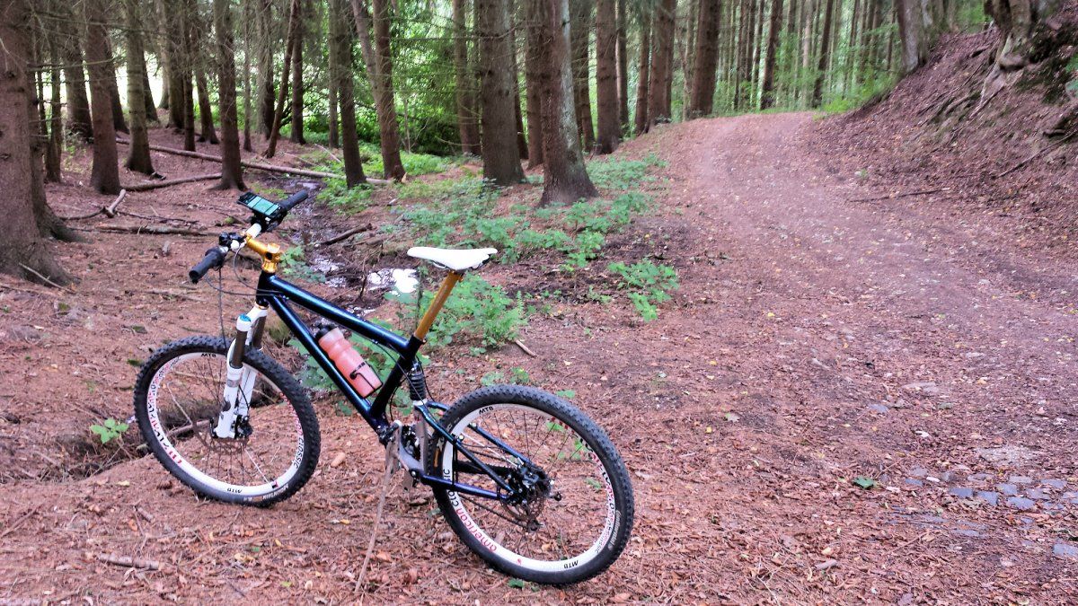 ...aber da fällt mir ein, dass ich hinten noch wechseln wollte. Genau die richtige Arbeit für das Dreckwetter. War nämlich nicht lustig, dass es auf jeder Abfahrt sofort blockiert hat... Mal sehen was an Gummis noch rumliegt
