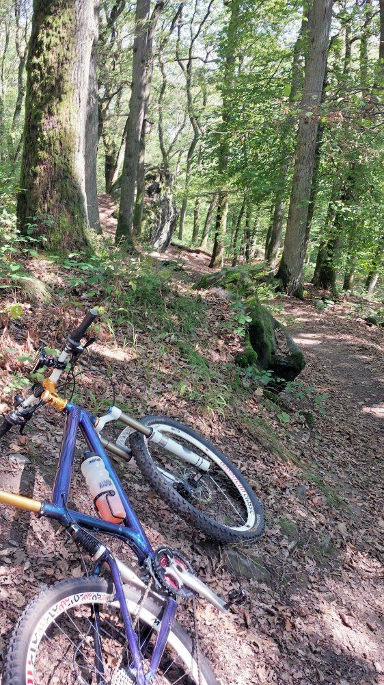 Nach der halben Abfahrt kam mir jemand mit Fully entgegen. Ich glaub ein schwarzes Specialized aus carbon erkannt zu haben. Auf jeden Fall ist der arme Kerl als ich 30 Meter vor ihm war entkräftet vom Rad abgestiegen...was ich kurz vorher noch bis genau zu dem Halt gefahren bin, schafft also nicht jeder