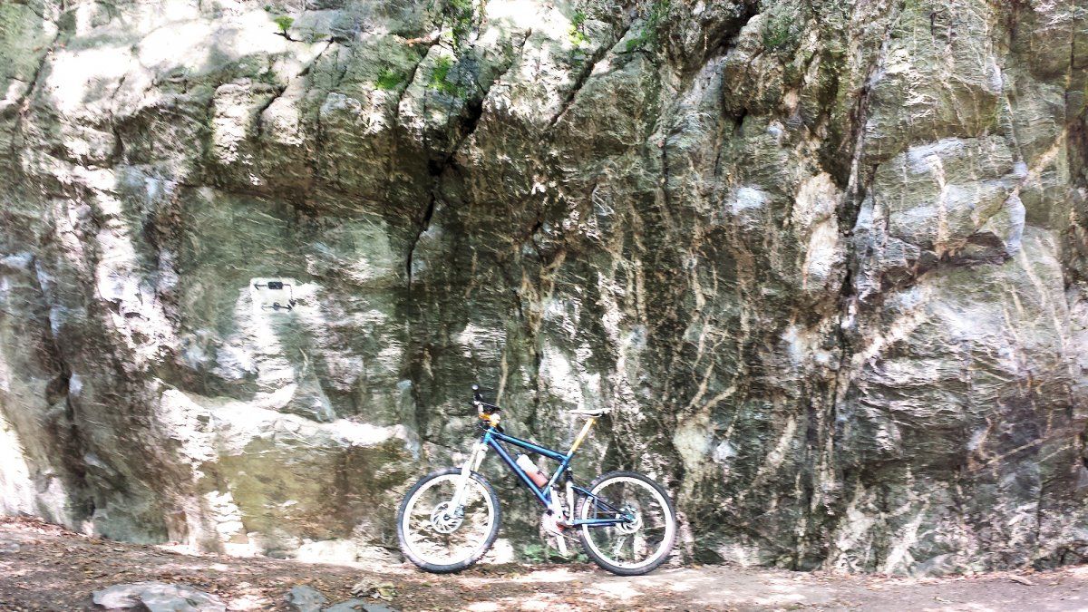 Dann gehts an der "Bürgelplatte" vorbei...schon mulmig das Rad unter so nen Überhang von 20 Tonnen Gestein zu stellen. Aber das steht ja schon paar Jahre so
