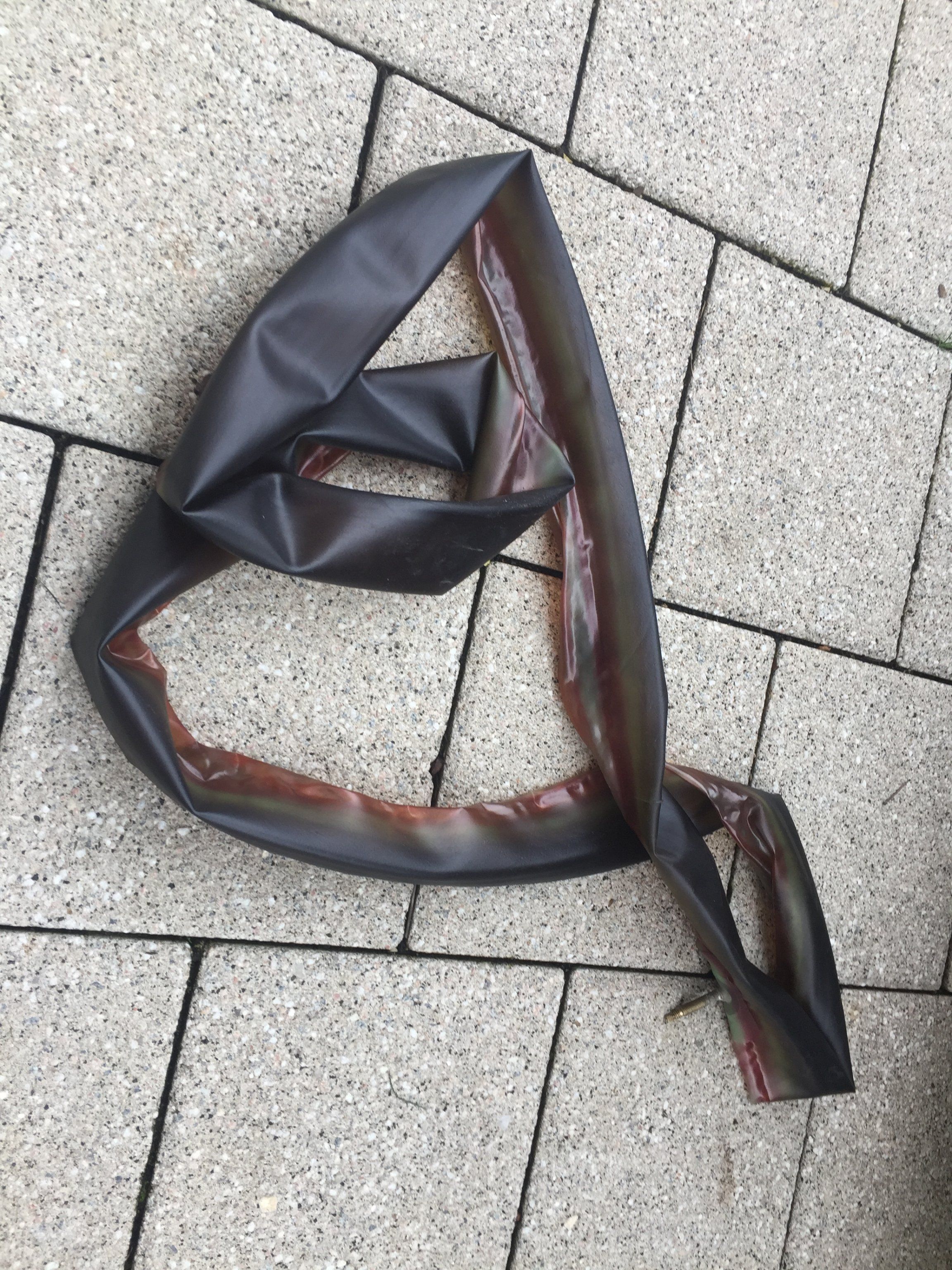 Die dunkle Verfärbung ist ganz normal, mein Ersatzschlauch hat das stellenweise auch schon. Wird aber auch vom Mantelhersteller und -Alter abhängig sein. Meine Eclipse-Schläuche sehen übrigens nach zwei bis vier Jahren auch etwas anders aus: